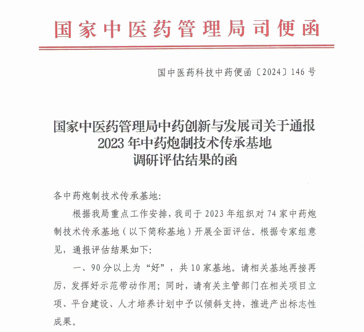 近日,国家中医药管理局中药创新与发展司关于通报2023年中药炮制技术传承基地调研评估结果的函,公司中药炮制技术传承基地被评定为优秀等次。本次评估有74家单位参评,TapTap点点官方网站排名位列前十名。本次评估是采取高校互评和国家中医药管理局评估相结合的方式进行,专家组高度评价了公司中药炮制技术传承基地建设成果,特别是对公司围绕产学研开展安徽道地特色饮片研究,实现亳白芍产地加工与炮制一体化、九蒸九晒黄精、天麻产地加工与炮制一体化等成功转化给予了充分肯定。