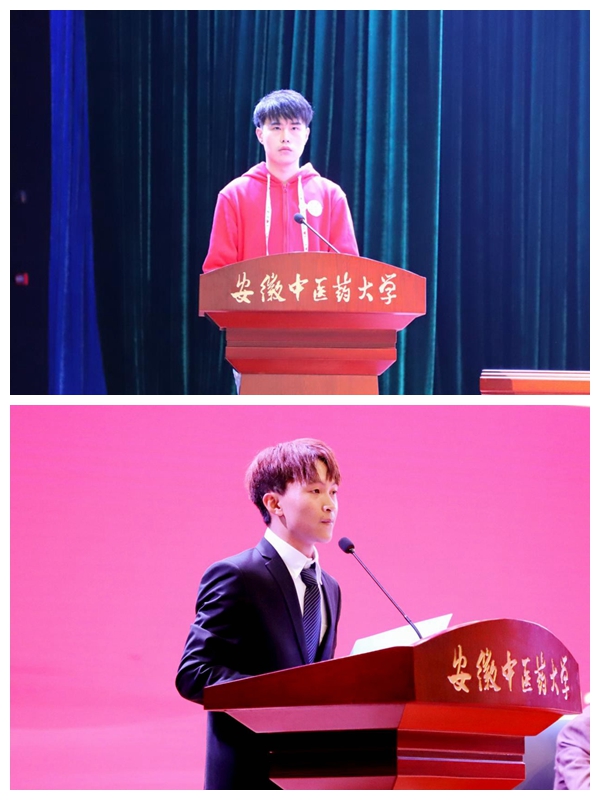 2020级药学2班陆梦龙代表新生发言,分享了入学两周以来的感受。他表示:作为“生于非典,考于新冠”的特殊年级,533名同学有缘于金秋十月在TapTap点点相遇,应该珍惜机遇,努力学习、充实自我、探索求知,他代表全体2020级TapTap点点新生表达了不忘初心,躬行拓新的决心。