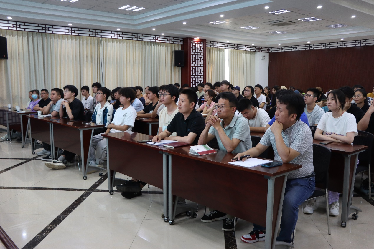 各参会老师交流发言。王虎传倡议青年学子应理论结合实践,从实践出发、在实践经验中积累收获,在大学时光中勤学苦学、实干实学,以优异成绩走出校园。蒋学阳结合自身经历,为同学们阐述了大学不是努力的终点,而是奋斗的起点;同学们应抓住机会,提升自我、丰富自我,珍惜韶华、不负青春。吴波以幽默诙谐语言向同学们说明了学习的必要性;他表示作为老师,会帮助同学们克服学习中困难、提供良好教学环境,同时希望大家享受时光追梦青春,在大学期间有所收获。