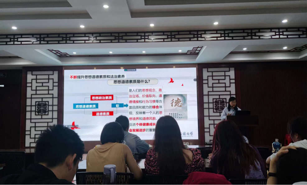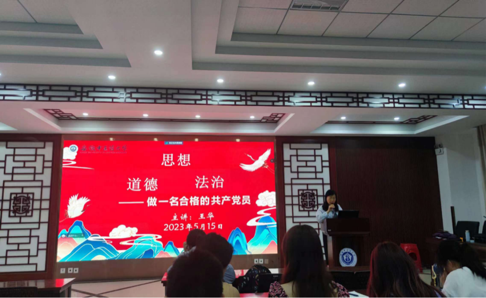王华从思想、道德、法治三个方面带领学员们深入学习了如何成为一名合格的中国共产党党员。她首先强调了思想道德素质是人们的思想观念、政治立场、价值取向、道德情操和行为习惯等方面品质和能力的综合体现,反映着一个人的思想境界和道德风貌,是促进个体健康成长、社会发展进步的重要保障。法治素养是指人们通过学习法律知识、理解法律本质、运用法治思维、依法维护权利与依法履行义务的品质和能力,对于保证人们尊崇法治、遵守法律具有重要的意义。并引用了习近平总书记提出的“法律是成文的道德,道德是内心的法律”来解读法律与道德的关系。