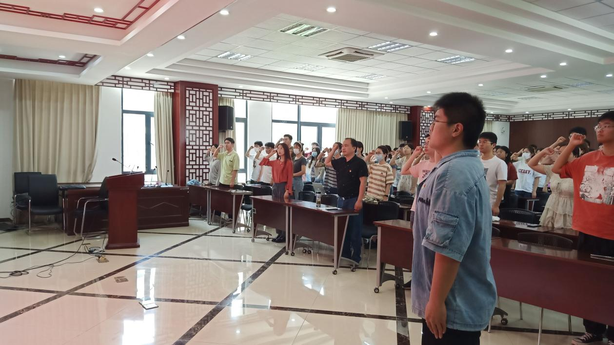 大会伊始,全体起立,奏唱《中华人民共和国国歌》。随后,发展对象张雨欢等26名同志依次上台进行汇报对党的认识、入党动机、本人履历、家庭和主要社会关系情况,同时在发言中表达了加入中国共产党的强烈愿望和入党决心。入党介绍人分别对26名拟发展对象在考察期的表现给予客观的评价、建议,并就是否同意其入党表明意见。接着,支部委员会报告对发展对象的审查情况,由员工第二党支部教师党员徐先韬宣读张雨欢等26名同志的入党综合政审报告。通过与会正式党员举手表决,全体党员一致同意张雨欢等26名同志成为中共预备党员。入党介绍人为新发展的预备党员佩戴党员徽章。与会党员在员工第二党支部组织委员张国伟的带领下,面向党旗庄严宣誓。
