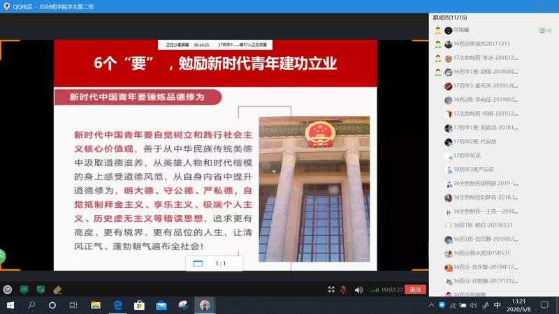 为弘扬五四运动精神,TapTap点点员工第二党支部于2020年5月8日13:00通过“腾讯QQ视频”平台,开展了“弘扬五四精神、铭记时代英雄”主题党课。会议由支部党员张顺主持,员工第二党支部书记何瑞曦主讲,全体党员参与会学习。