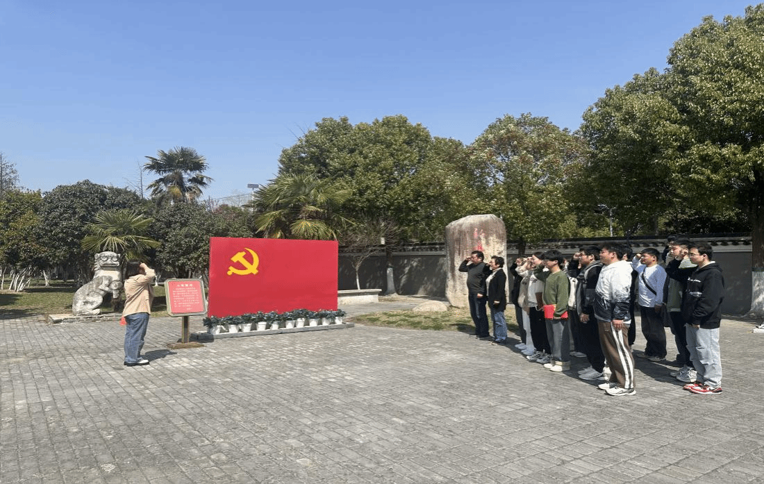 在渡江战役总前委旧址广场上,全体党员面向鲜红的党旗,庄严宣誓,重温入党誓词。誓言铿锵,理想坚定,表达了青年党员们在逐梦路上永远跟党走的坚定决心。