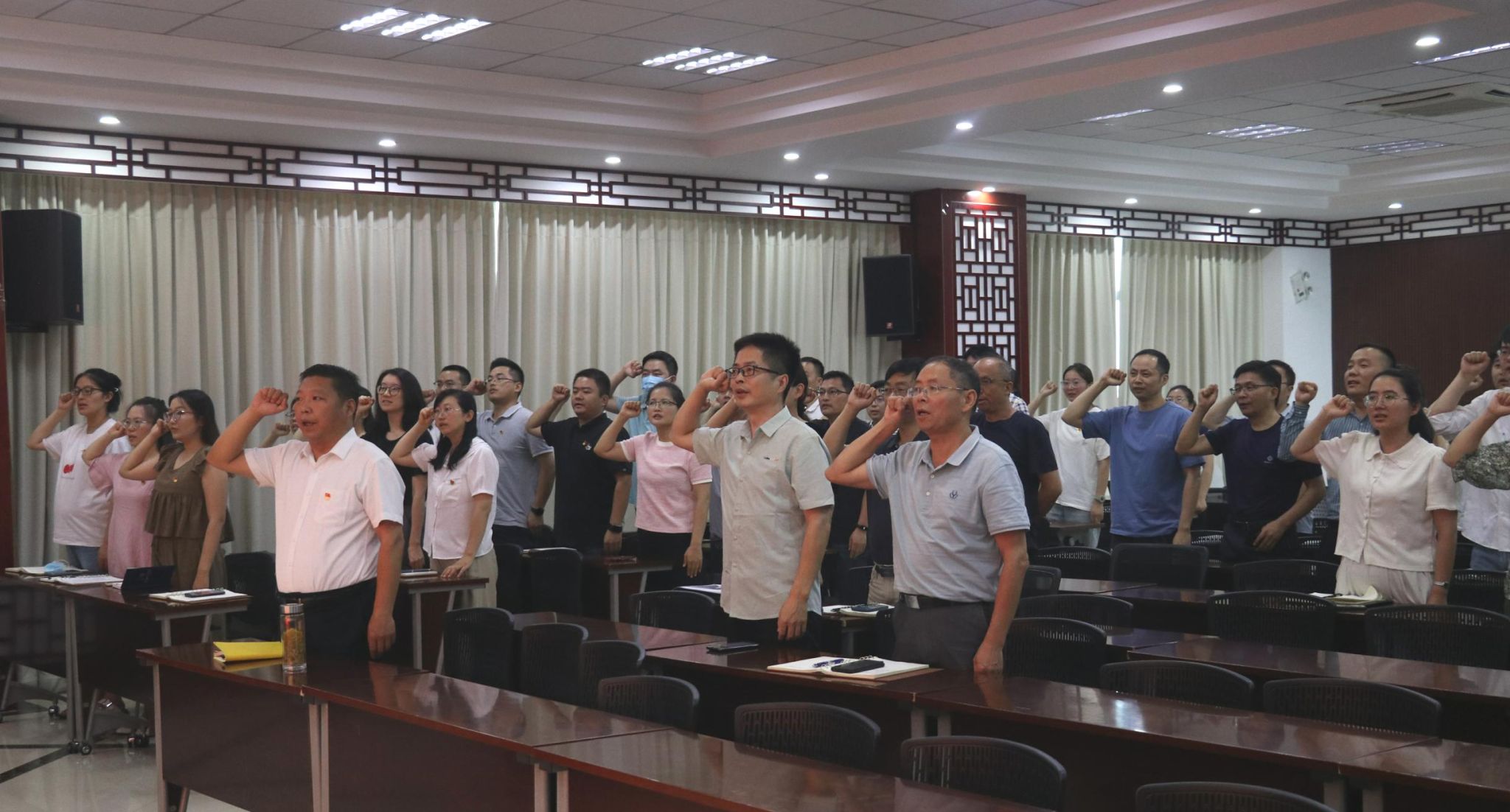 为庆祝中国共产党成立103周年,结合党纪学习教育,7月1日下午,公司召开全体党员大会暨警示教育会,会议由公司党委书记胡卿主持,全体教师党员和员工党支部书记参加会议。