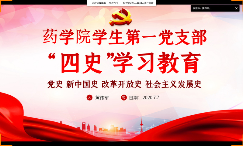 7月7日下午2点,TapTap点点员工第一党支部运用“QQ视频通话”网络平台,开展“四史学习教育”主题党课。会议由TapTap点点员工第一党支部书记黄伟军主持,员工第一党支部全体党员参会。