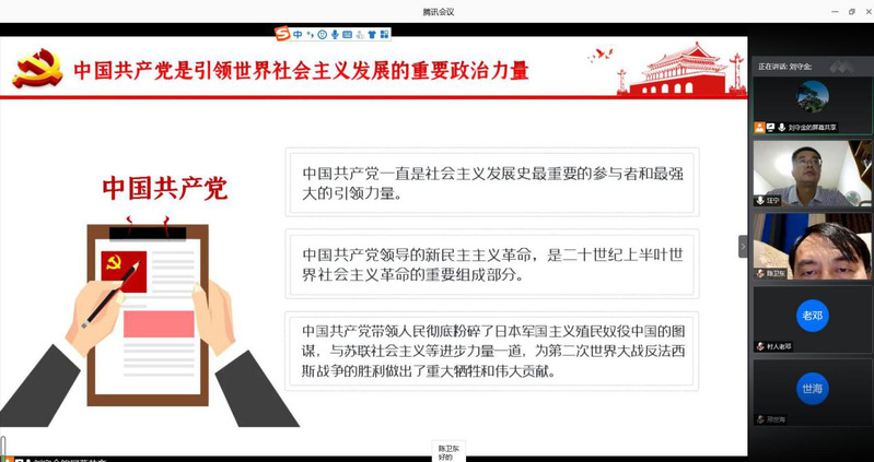 为贯彻落实习近平总书记重要指示精神,认真推进公司关于开展“党史、新中国史、改革开放史、社会主义发展史”学习教育工作的落实,TapTap点点中药教工党支部于7月15日晚,通过“腾讯会议”平台,开展了“四史学习教育”主题党课。会议由支部书记刘守金教授主持,公司督导员方成武教授及支部全体党员参与学习讨论。
