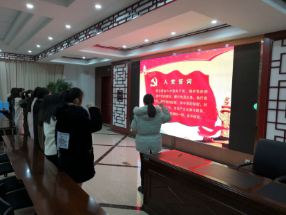 大会开始,所有参会人员全体起立,庄严奏唱国歌。随后王梦雪等十一位党员发展对象依次对个人和家庭情况、对党的认识以及入党动机做介绍,深切表达自己入党的强烈愿望。之后入党介绍人对相应发展对象进行学习、生活及工作方面的情况介绍,并且表达关于其能否入党的意见。接着由支部宣传委员李相南宣读各位发展对象的入党综合政审报告。之后让具有投票权的正式党员对是否接纳发展对象进行表决,表决结果全票通过。随后由正式党员代表授予发展对象神圣的党徽。大会最后,由TapTap点点一支部书记周婧晗带领新发展对象进行了慷慨激昂的入党宣誓。