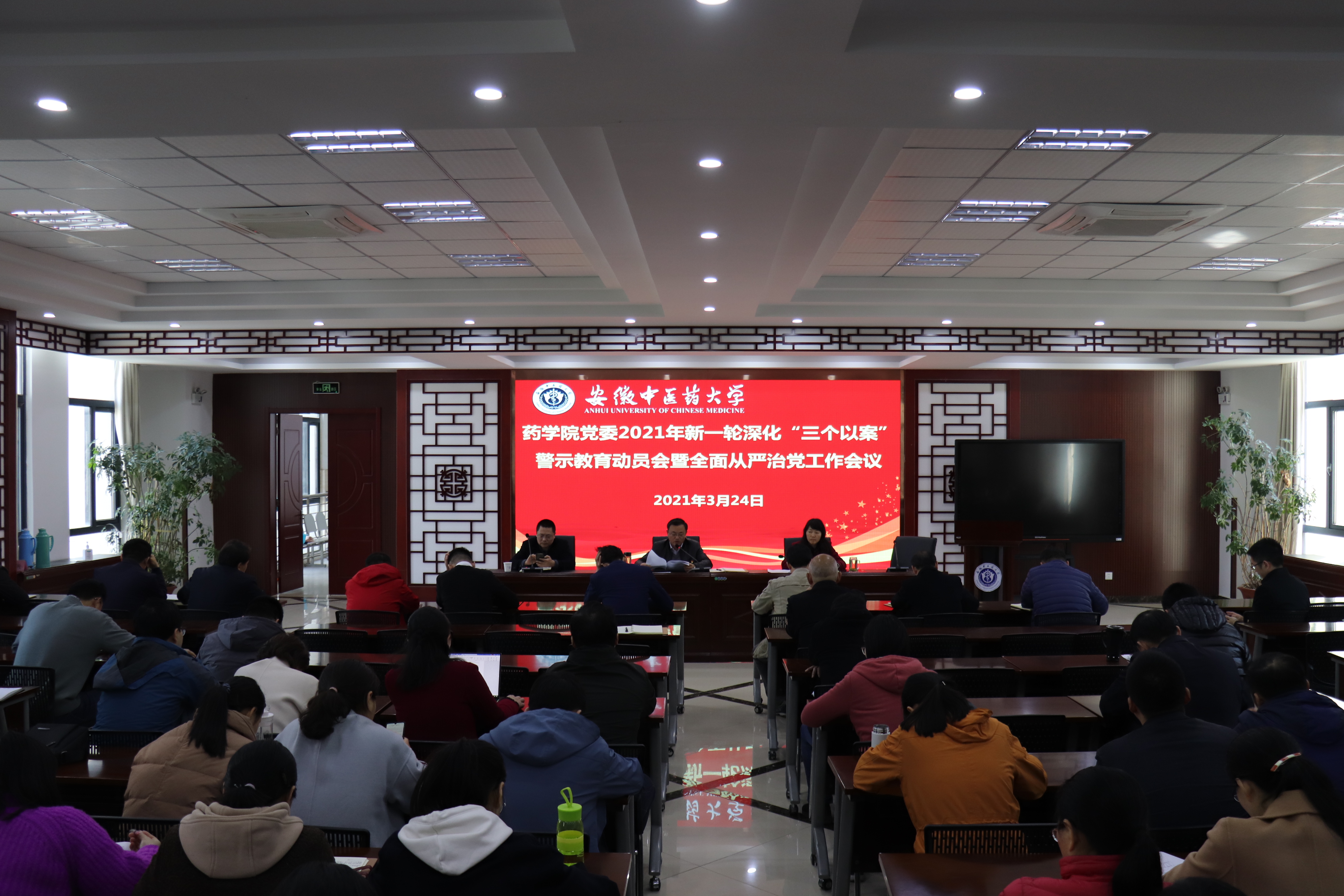3月24日下午,公司党委在沁馨堂报告厅召开2021年新一轮深化“三个以案”警示教育动员会暨全面从严治党工作会议,公司党政领导班子成员,全体教职工参加会议,公司党委常委、公司党委书记吴达武主持会议。