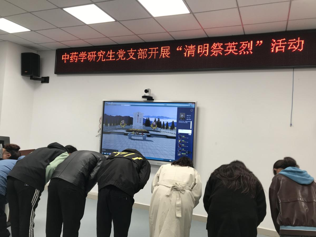 清明之际,清明之祭。每一方纪念碑,每一座烈士墓,每一段英雄故事,都促使人们不断重温中国的英雄主义。习近平总书记曾说过:“英雄是民族最闪亮的坐标。”为表达对于英烈的深切哀悼,活动第二项中药学研究生党支部组织全体党员同志进行默哀。此外因受疫情影响,在当前全国上下众志成城、坚决打赢疫情防疫阻击战的情况下,支部认真按照全国关于新冠肺炎疫情防控期间烈士祭扫工作要求,另外开设了线上参与“守护.2021清明祭英烈”活动,表达同学们对先辈的哀思以及对历史的铭记!