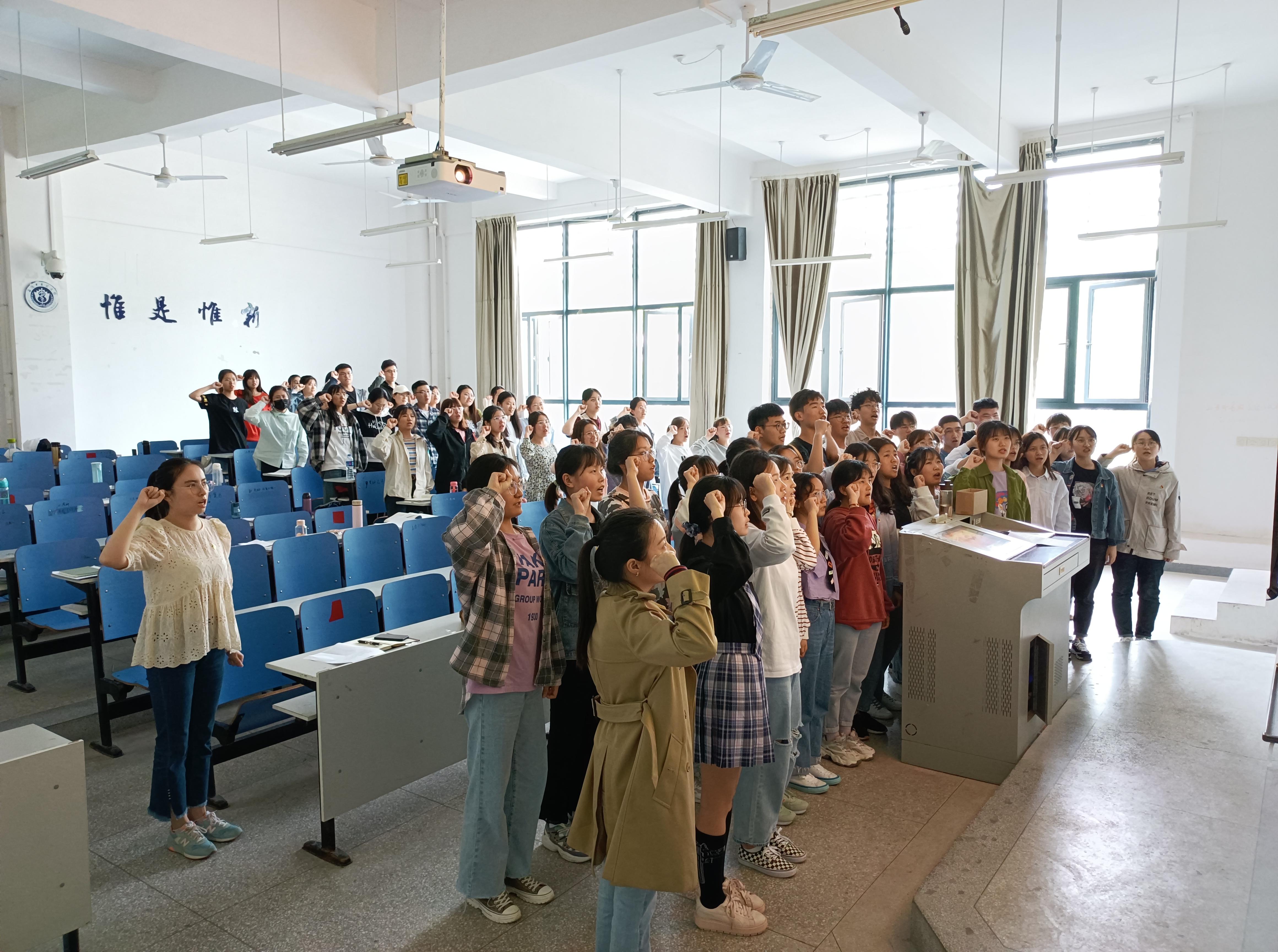 会议严格按照党组织接受预备党员程序。大会开始,全体起立,面对党旗奏唱《中华人民共和国国歌》。而后,陈玉锋等32名党员发展对象逐一向党组织汇报自身对党的认识、入党动机、本人履历、家庭和主要社会关系情况。随后,由相应入党介绍人向大会介绍其主要政治思想、学习、工作生活等情况,并对其能否入党表明意见。紧接着,支部汪媛同志报告党员发展对象现实表现的考察情况以及综合政治审查情况,与会正式党员对发展对象是否符合党员条件发表意见。经拥有表决权的正式党员对是否接受预备党员进行无记名投票,最终全体党员一致同意陈玉锋等32名发展对象正式成为中共预备党员,由入党介绍人为新发展预备党员佩戴党员徽章、合影留恋并在支部书记周婧晗带领下面向党旗庄严宣誓。
