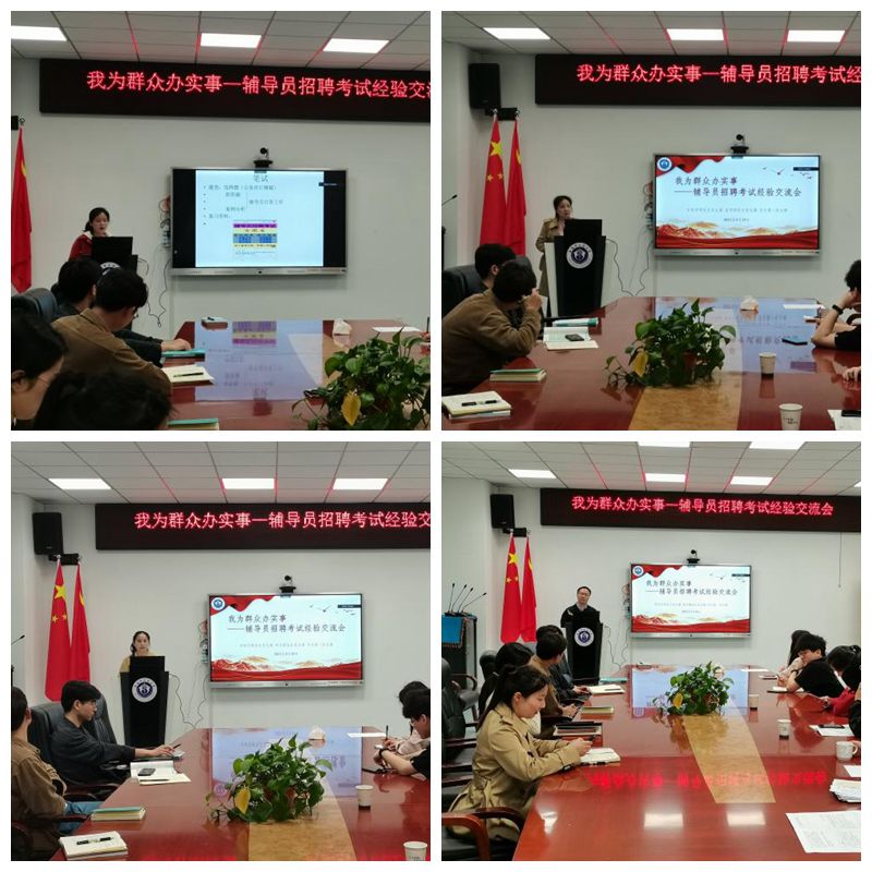 随后各位嘉宾分别分享辅导员招聘考试的经验。高韵同学结合自己考上皖西公司的经历,讲解了关于辅导员笔试知识的选用与面试经验。她认为辅导员考试要结合自身情况,制定适合自己的复习计划。汪媛老师结合参加素质能力大赛的经历,进行了案例分析的分享,传授面试技巧。对于技能考核,她强调一要分析题目中心点,二要在题目中切实解决员工问题。汪老师指出,多了解辅导员日常工作,会对辅导员面试有很大的帮助。周婧晗老师指出,辅导员笔试除了辅导员必备知识外,还会涉及到时事政治、思政会议、公务员考试和事业单位考试的基础知识等内容。回答面试问题时,要结合实际、视野开阔、思路清晰、从容应对。方文韬老师强调要仔细查看拟报考公司的招聘条件,准备好报考及现场资格审查所需的附件材料,分享了备考资料获取的方式。