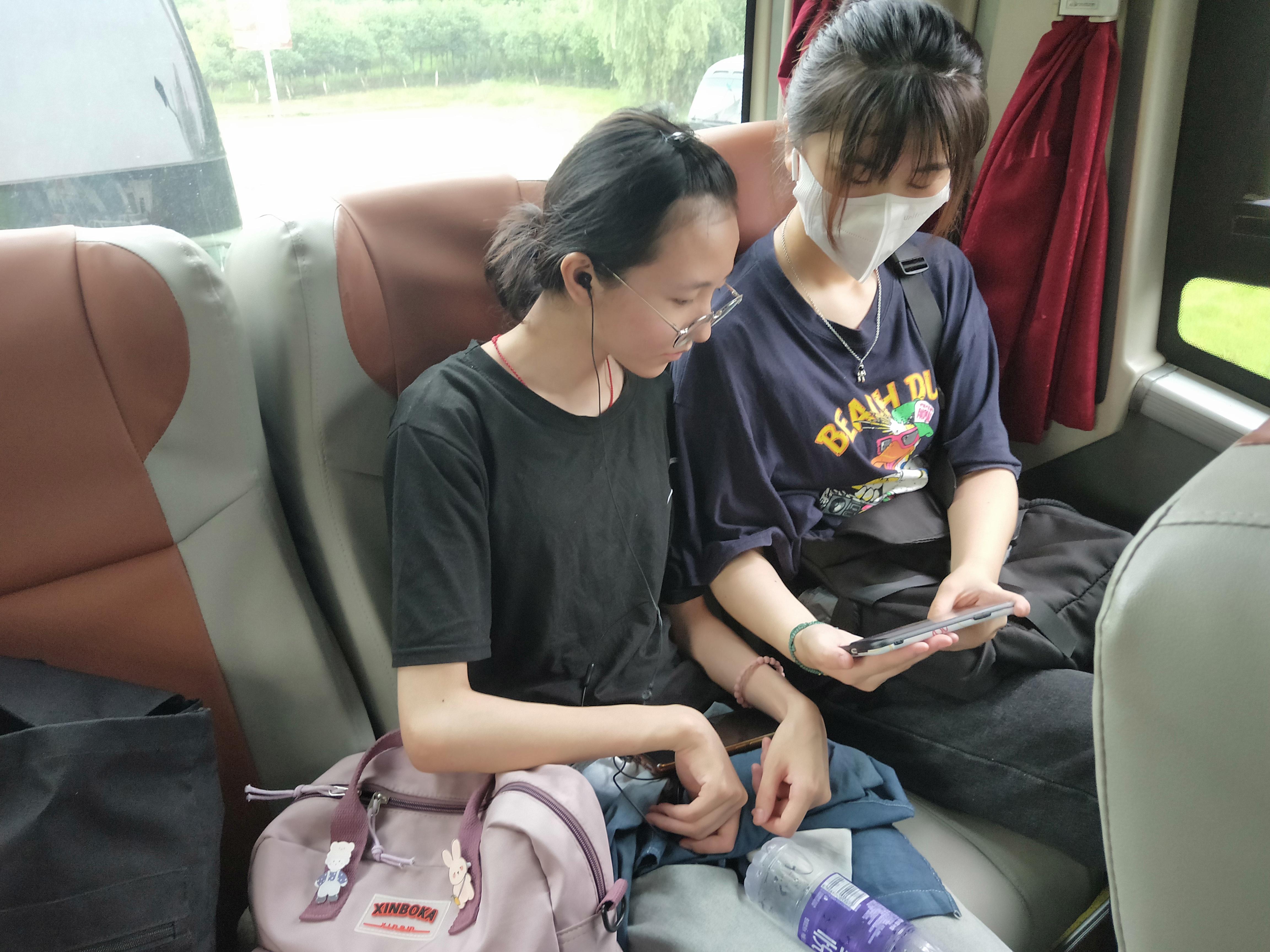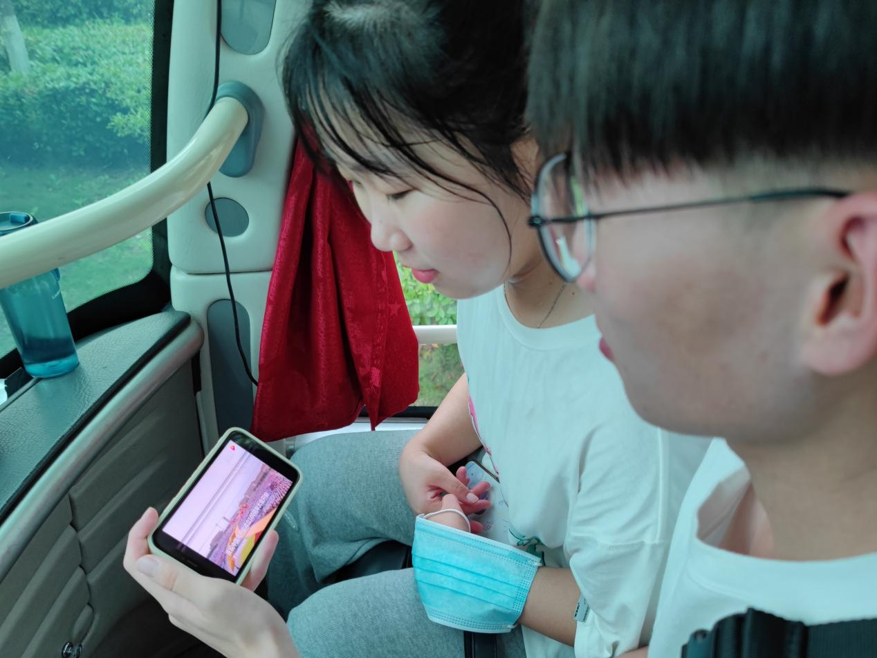 支部18级党员正前往亳州进行小学期实践,他们在大巴车上通过观看录像的形式,一同重温习近平总书记在庆祝中国共产党成立100周年大会上的重要讲话精神。
