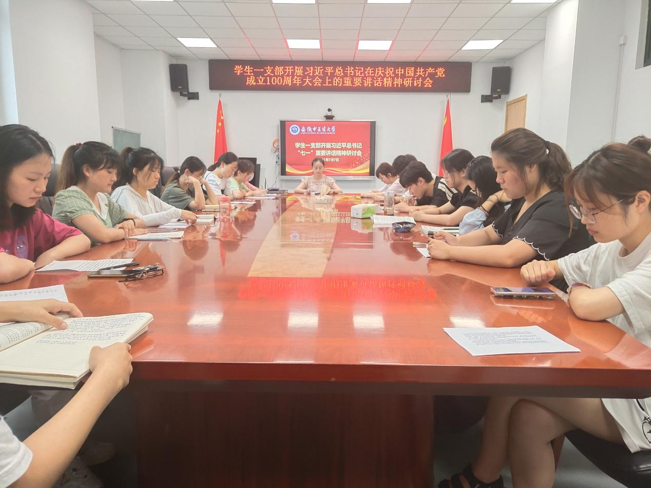 周婧晗指出在庆祝中国共产党成立100周年大会上,习近平总书记精辟概括“坚持真理、坚守理想,践行初心、担当使命,不怕牺牲、英勇斗争,对党忠诚、不负人民”的伟大建党精神,号召全党同志“永远把伟大建党精神继承下去、发扬光大”。周婧晗强调作为青年老员工,要“有骨气”,更要“长志气”,将个人价值的实现融入到中华民族伟大复兴的革命征程中,让青春在奋斗中熠熠生辉!随后各位同学依次分享了自己对“七一”重要讲话精神的理解与体会。同学们纷纷表示要不断强化党员意识,坚定理想信念,在日常学习生活中发扬中国共产党党员不怕苦、不怕累的精神。19中药班陈丽同学说,伟大建党精神是中国共产党的精神之源,是我们党战胜困难挑战、永立不败之地的精神密码,必须深刻领会、倍加珍惜、传承践行。