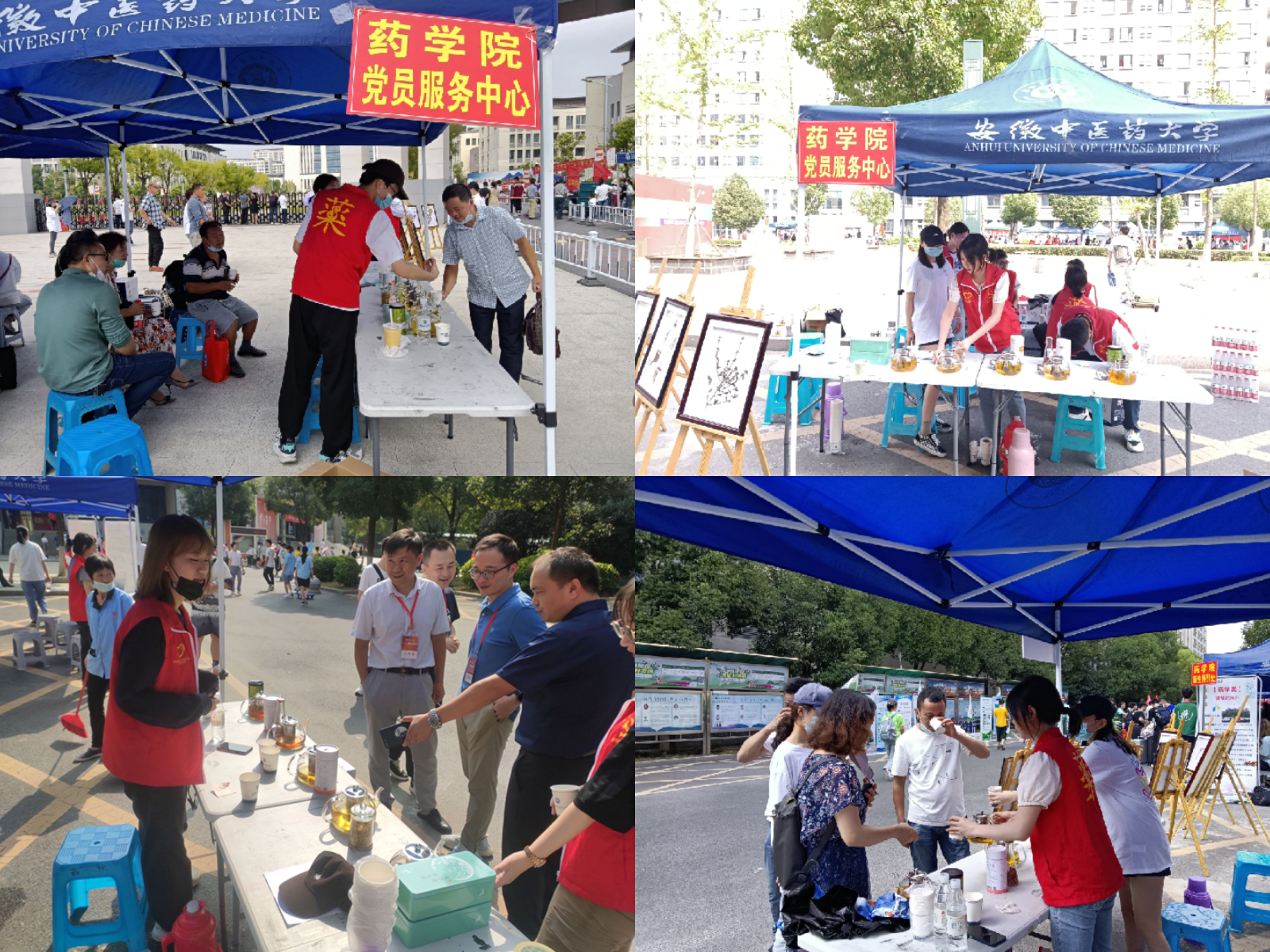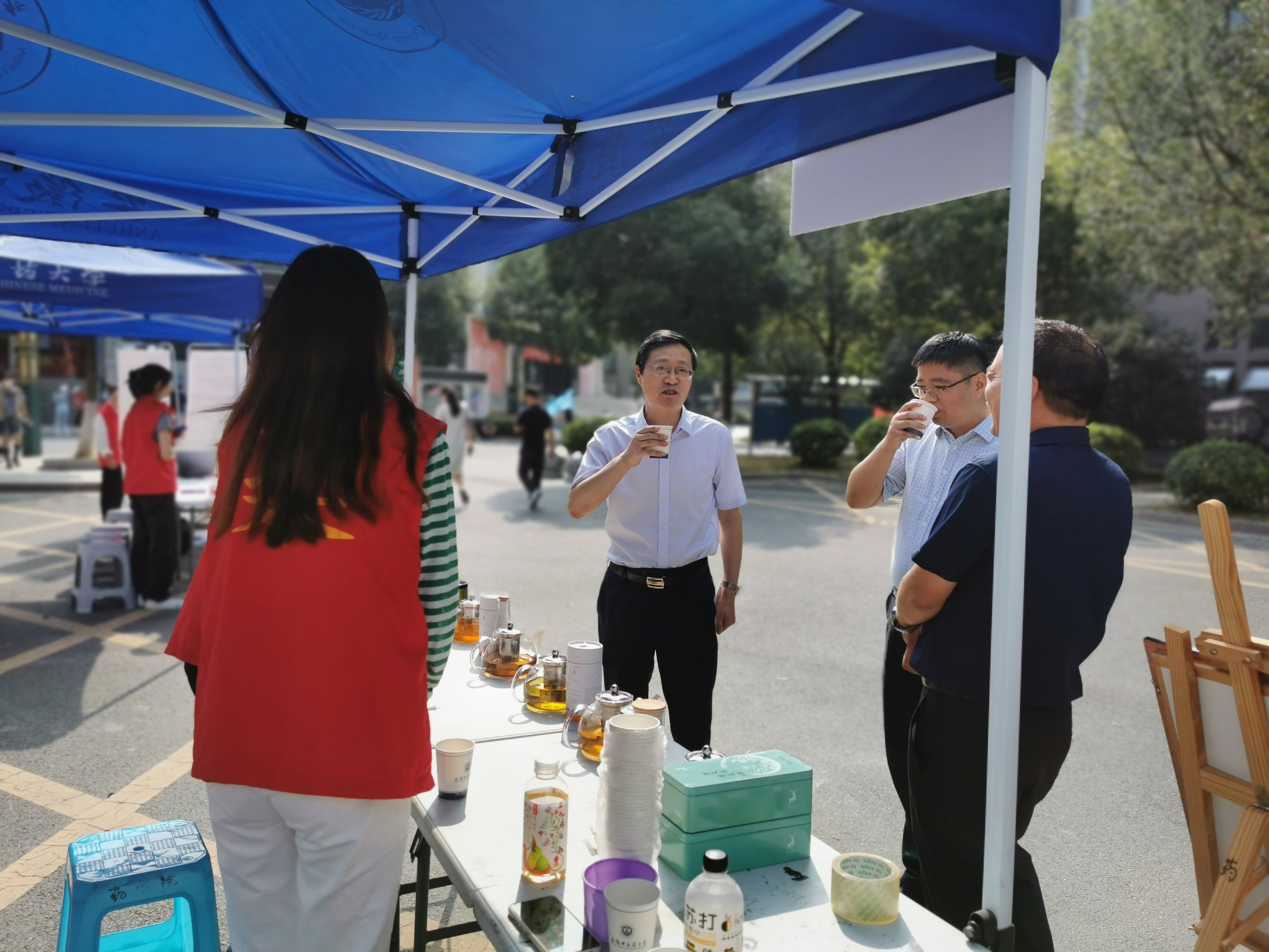 晨光熹微,党员先锋队队员们全员到达“公司党员服务中心”,提前进行物资整理。而后,分别在公司南门设置了“家长休息服务区”和校园内设置了“新生加油站服务区”,并且在两个服务区都准备了各式中药花茶品鉴与中药标本展示,为迎新做足了充分准备。校园里,随处可见队员们的身影,他们主动接过沉甸甸的行李箱,引导新生办理报道手续,耐心解答疑惑。在家长休息服务区,队员们热情地为来访的家长们介绍中药标本的采集、制作、加工与保存等相关知识,邀请家长们品尝花茶,缓解路途疲劳的同时也让他们更直观地感受到了中医药文化的魅力。
