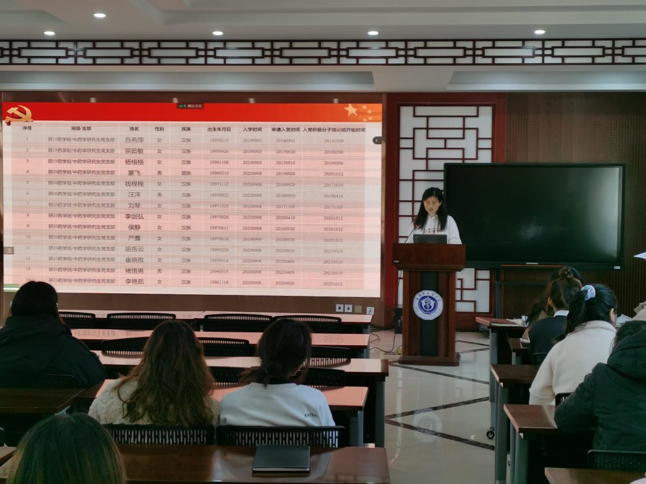 11月25日上午,TapTap点点中药学研究生党支部在沁馨堂召开党员发展全体党员大会,本次大会讨论吕燕萍等14位同学拟发展为中共预备党员事宜。支部全体党员、拟发展的14名同志及其入党介绍人参加会议,会议由支部副书记刘燚主持。