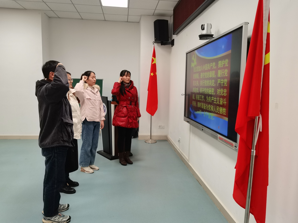 预备党员在宣传委员张云静的带领下进行入党宣誓,全体党员再次重温入党初心。