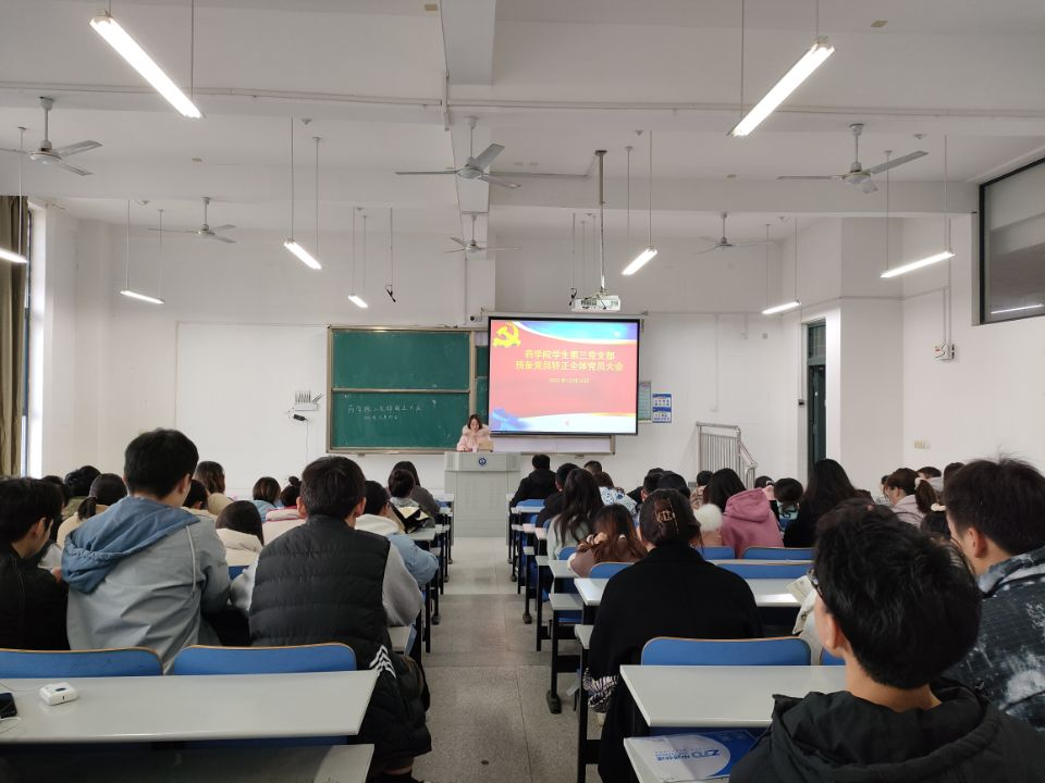大会开始,全体起立,奏唱《中华人民共和国国歌》。预备党员苏蝶等13名同志依次汇报预备期一年内个人的收获与感悟,并就其自身尚存在的不足之处表达将继续努力加以改进的决心。13位预备党员的入党介绍人分别就各人表现和培养考察状况进行介绍,并表明了对其能否转正的意见和态度。经与会正式党员投票对13名同志逐个表决,一致同意苏蝶等13名同志按期转正。