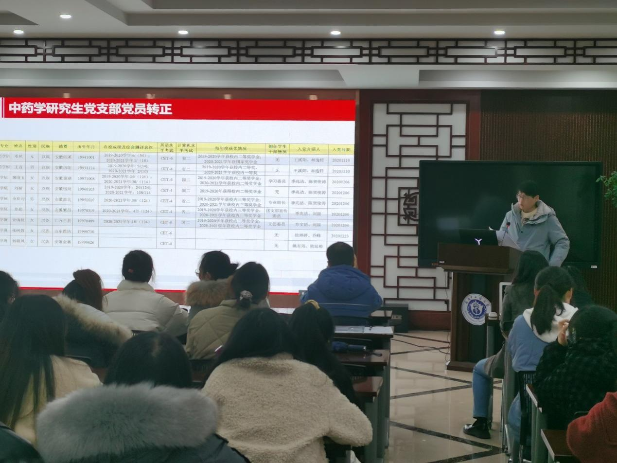 10月24日下午,TapTap点点中药学研究生党支部在TapTap点点沁馨堂召开预备党员转正全体党员大会,讨论支部预备党员转正事宜。支部全体党员、拟转正预备党员、入党介绍人参加会议,支部书记方文韬主持会议。