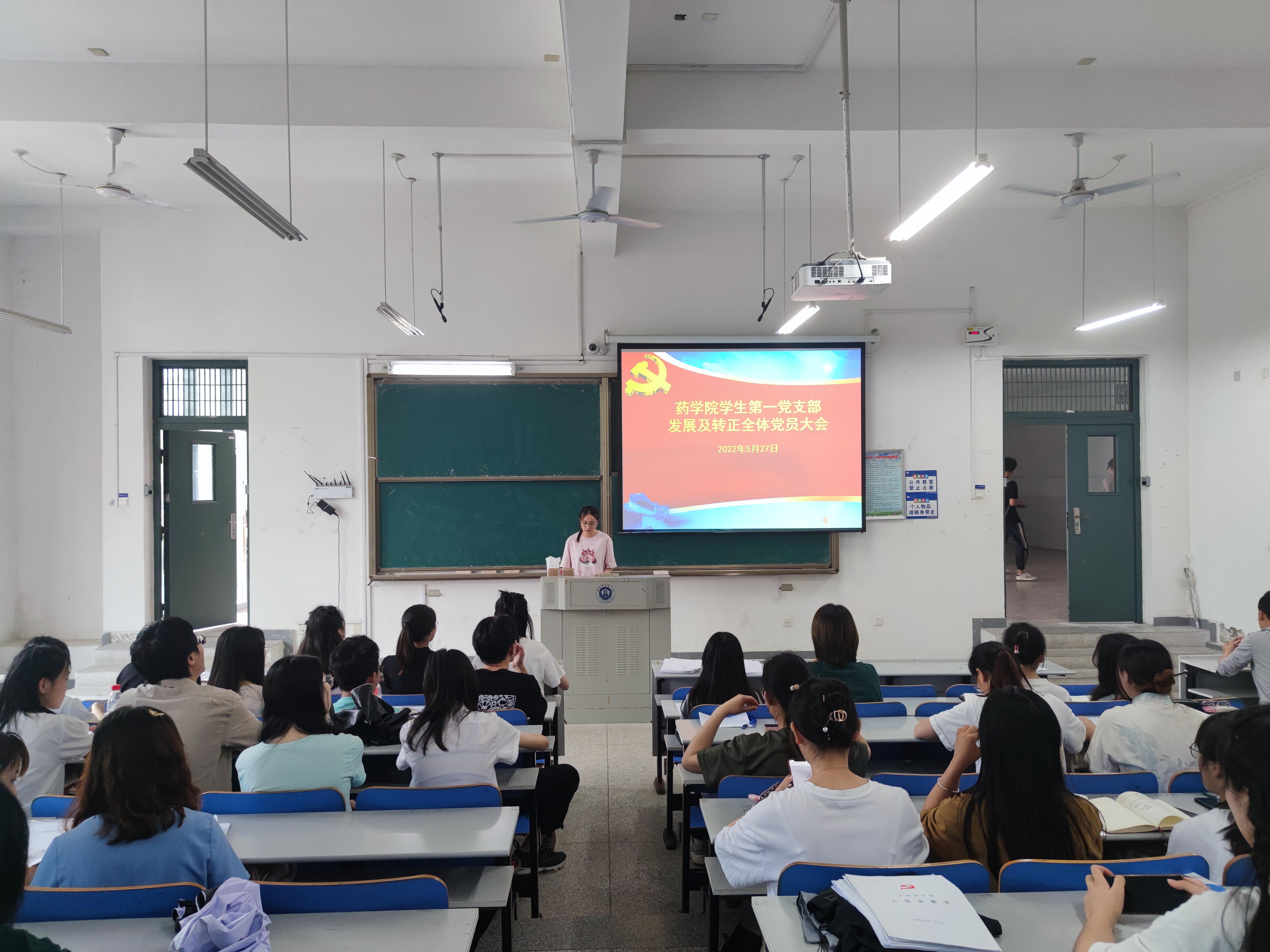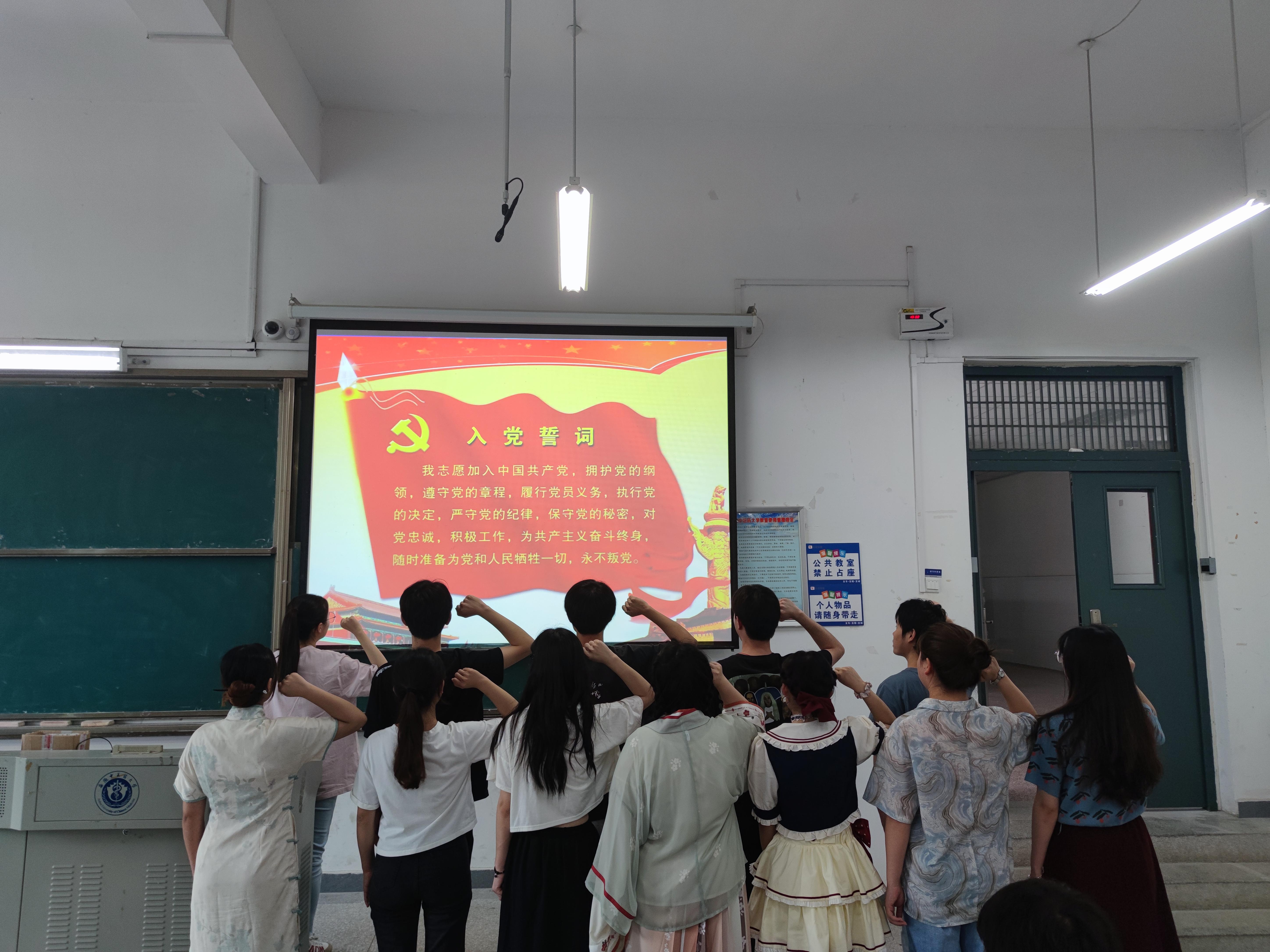 大会开始,全体起立,奏唱《中华人民共和国国歌》。大会第一项,宫唯涵等14位党员发展对象逐一汇报自身对党的认识、入党动机、本人履历、家庭和主要社会关系情况。随后,由相应入党介绍人向大会介绍其主要政治思想、学习、工作生活等情况,并对其能否入党表明意见。最后,经拥有表决权的正式党员对是否接收预备党员依次进行举手表决,一致同意吸收宫唯涵等14位同志为中共预备党员,由入党介绍人为新党员佩戴党员徽章、合影留念并庄严宣誓。