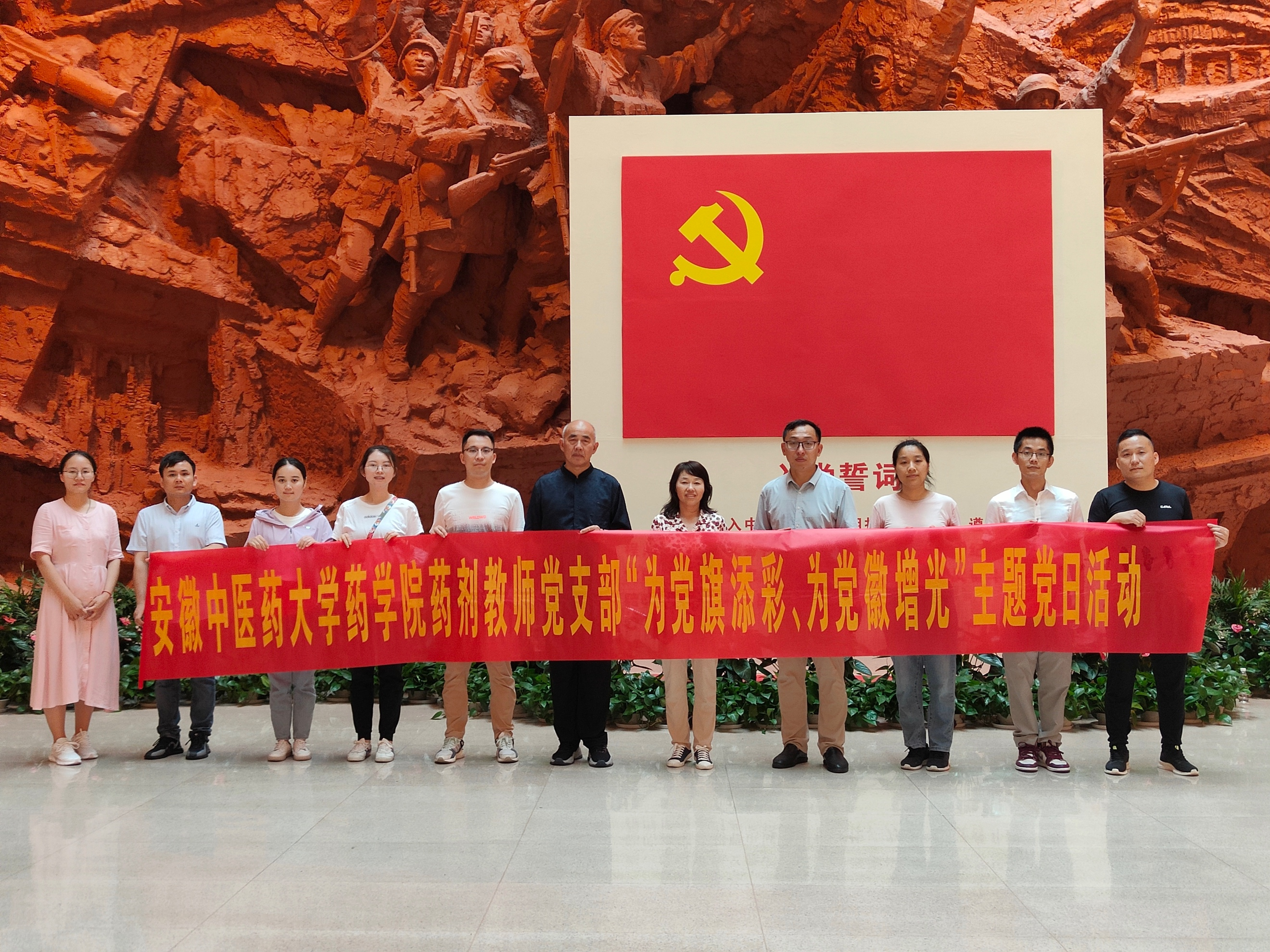 2022年6月26日,为迎接建党101周年,药剂教师党支部赴渡江战役纪念馆开展了“为党旗添彩、为党徽增光”主题党日活动,支部全体党员参加了此次活动。