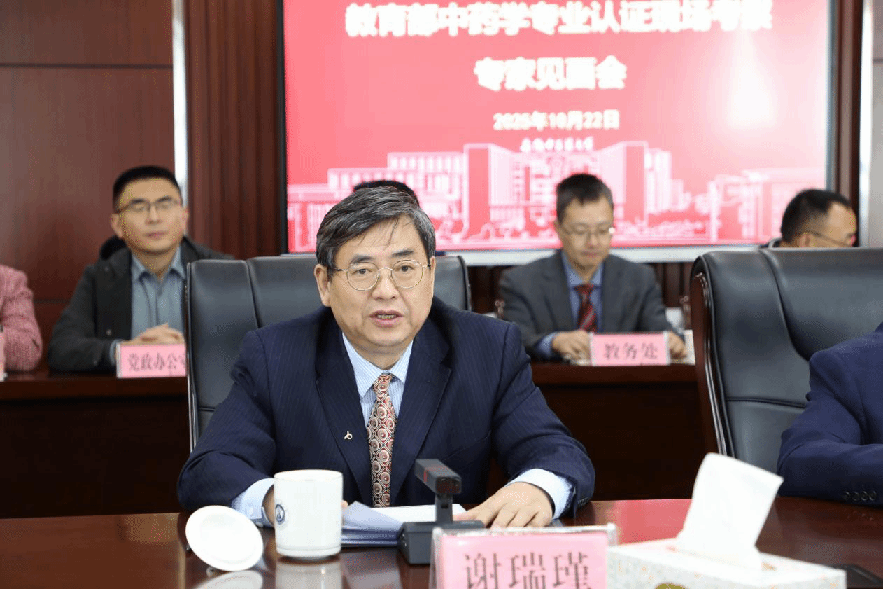 谢瑞瑾在致辞中代表公司对各位专家的到来表示热烈欢迎和衷心感谢。并指出:公司中药学专业办学历史悠久、特色鲜明,始终受到公司高度重视和重点支持,现已成为国家一流本科专业建设点。近年来,公司围绕人才培养核心使命,持续强化育人能力。本次中药学专业认证现场考察,既是对公司中药学专业办学水平的一次全面检验,更是推动公司内涵发展、提升办学水平的重要契机。他表示,认证期间,公司以最高的热忱、最实的作风配合认证考察工作,并以此次中药学专业认证为起点,锚定高水平中药学人才培养目标持续奋进。