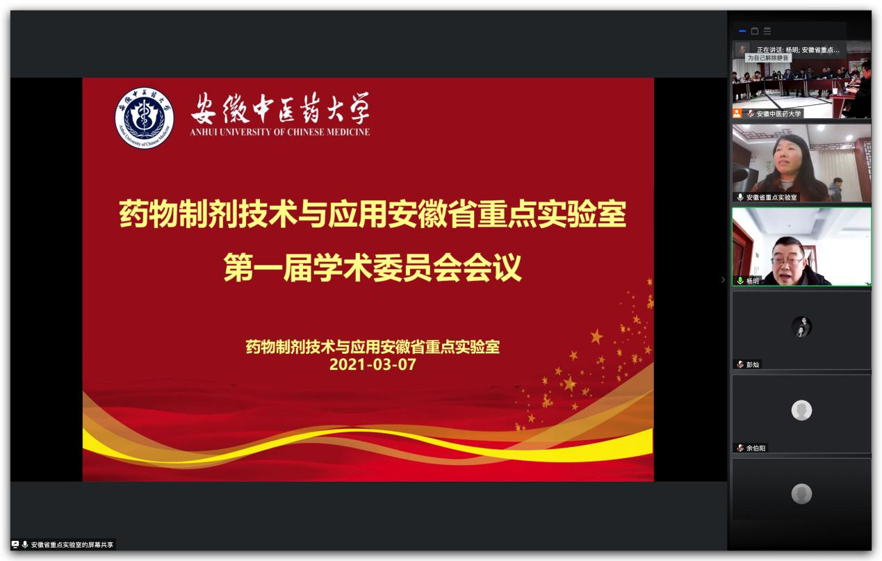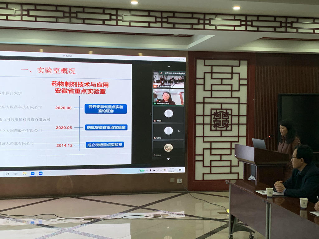 2021年3月7日下午,药物制剂技术与应用安徽省重点实验室2020年度学术委员会会议在惟新楼沁馨堂会议室举行,会议采取线上线下混合方式进行。公司科技处处长吴德玲教授主持开幕式,重点实验室学术委员会主任委员、江西中医药大学副董事长杨明教授主持学术委员会会议。重点实验室学术委员会全体成员,公司董事长彭代银、副董事长李泽庚、副董事长许钒、公司党委书记吴达武,重点实验室主任、TapTap点点经理桂双英以及实验室骨干成因参加了会议。