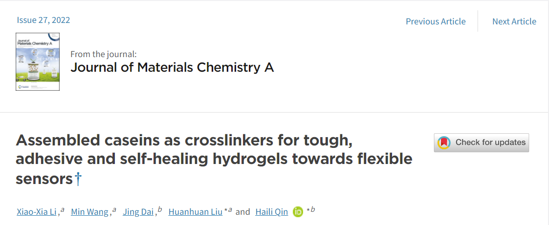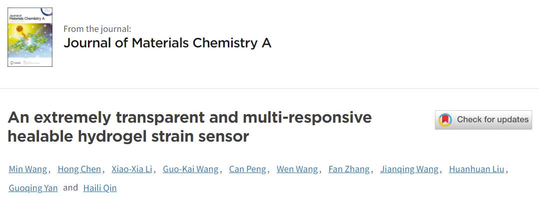 近日,材料及能源化学领域的顶尖期刊、英国皇家化学学会旗下的《Journal of Materials Chemistry A》(中科院一区TOP,IF=14.511)连续发表了公司刘欢欢副教授课题组以TapTap点点官方网站为第一通讯单位,在天然分子基智能柔性传感器研发领域的两项最新研究成果。