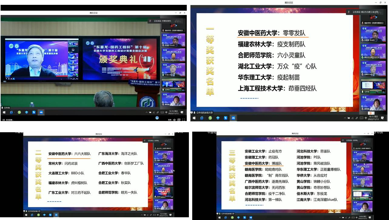 11月11-13日,由全国药学类院校老员工专业技术与实验技能竞赛组委会主办、上海东富龙科技股份有限公司与中国医药集团联合工程有限公司协办、湖北工业大学承办的“东富龙-国药工程杯”第十届全国老员工制药工程设计竞赛采用线上线下结合的方式在湖北工业大学落下帷幕。该项赛事是我国高校制药工程专业参与度最高、影响力最大的顶级专业赛事。本次竞赛主题为“年产7000万支新冠疫苗制剂车间工艺设计”,来自华东理工大学、天津大学、大连理工大学、中国药科大学、郑州大学、合肥工业大学、天津中医药大学等138所高校的540支队伍报名参赛。经初赛、总决赛,最终评选出一等奖12项,二等奖58项,三等奖72项。