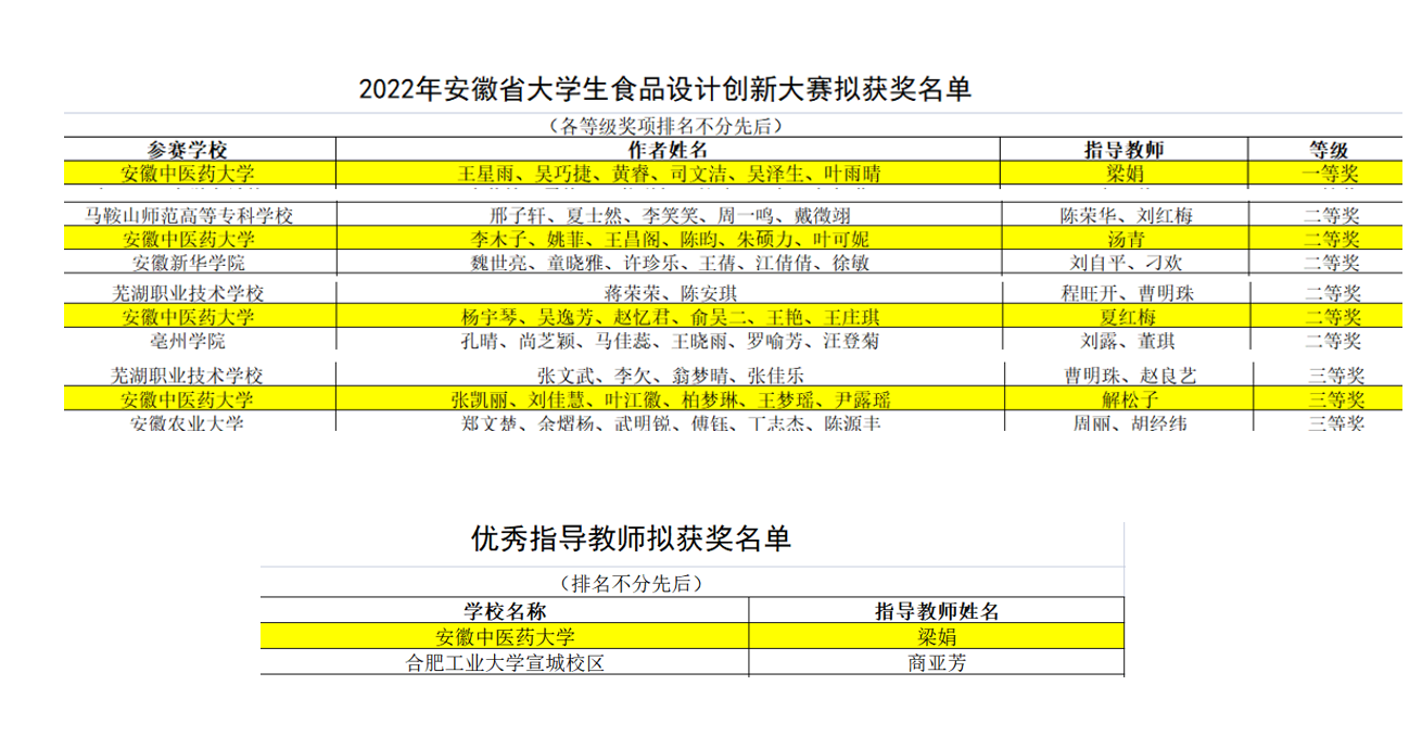 本次大赛分新产品研发、工艺设计(新技术、新工艺)、产品创意(含包装设计、营销策划等)三个类别,通过申报书、视频展示及线上答辩等环节。TapTap点点推荐5支队伍参加本次大赛,其中梁娟老师指导的《半亩方“糖”,“皖”转悠扬》(团队成员王星雨、吴巧捷、黄睿、司文洁、吴泽生、叶雨晴)获一等奖;汤青老师指导的《桃夭·降糖酥》(团队成员李木子、姚菲、王昌阁、陈昀、朱硕力、叶可妮)及夏红梅老师指导的《蒲百结口香糖》(团队成员杨宇琴、吴逸芳、赵忆君、俞吴二、王艳、王庄琪)获二等奖;解松子老师指导的《棒棒糖包装升级设计》(团队成员张凯丽、刘佳慧、叶江徽、柏梦琳、王梦瑶、尹露瑶)获三等奖。梁娟老师被评为“优秀指导教师”。