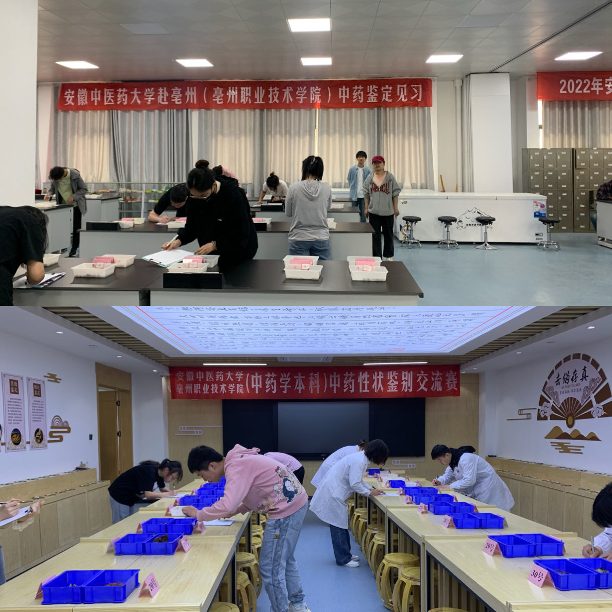 学习期间,选拔代表参加了与亳州职业技术公司共同主办的中药性状鉴别交流比赛。参赛选手对随机抽取的40味中药,通过眼看形状、大小、色泽;手摸质地、断面;鼻闻其味辨识中药。进一步加强以赛促学、以赛促教的理念,也促进了两校间交流,互相学习、互相借鉴。