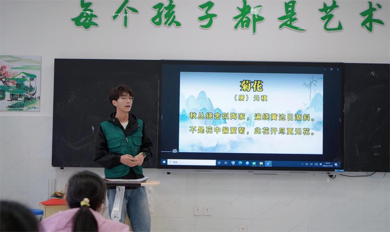 “采菊东篱下,悠然见南山。”“不是花中偏爱菊,此花开尽更无花。”课堂上,小员工们在员工志愿者的带领下齐声朗诵,感受菊花高雅纯洁、正直不屈的品质,体会古人对菊花的喜爱。