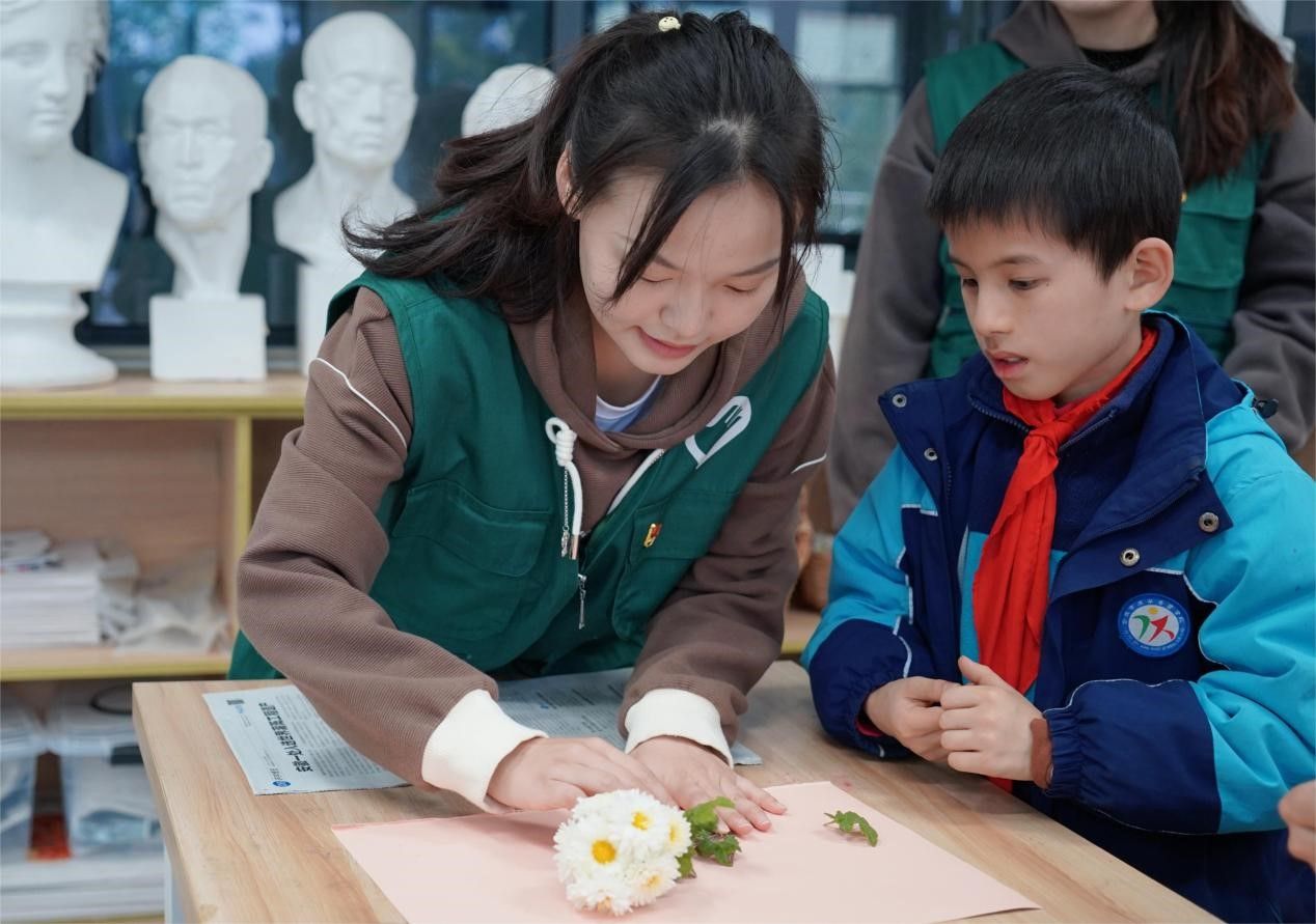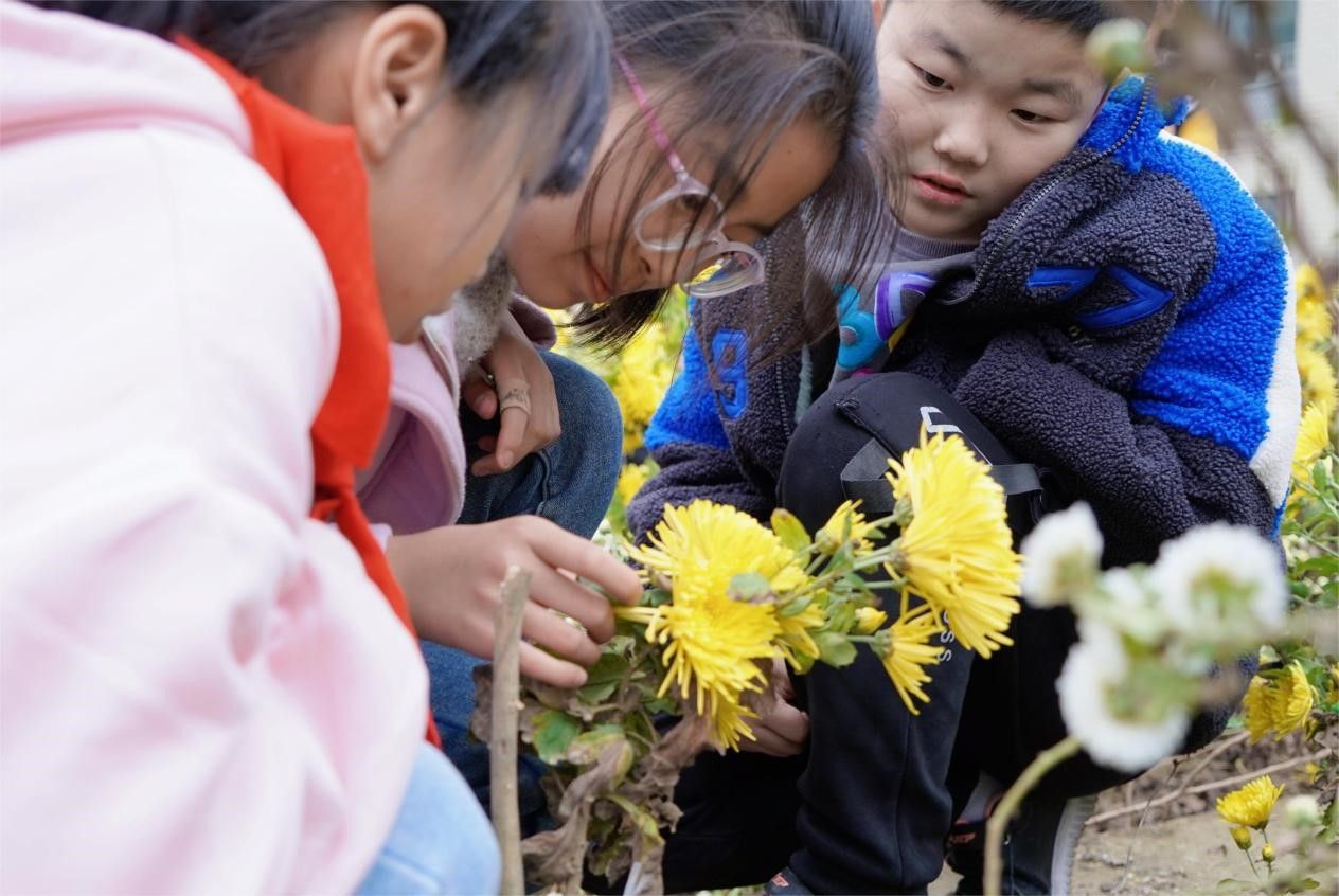小员工们认真观察菊花形态,动手整理花枝,轻轻抖落灰尘,去除杂物……在制作过程中,小员工们不断尝试、调整,做出完美的标本或画作,提高他们的实践和创新能力。