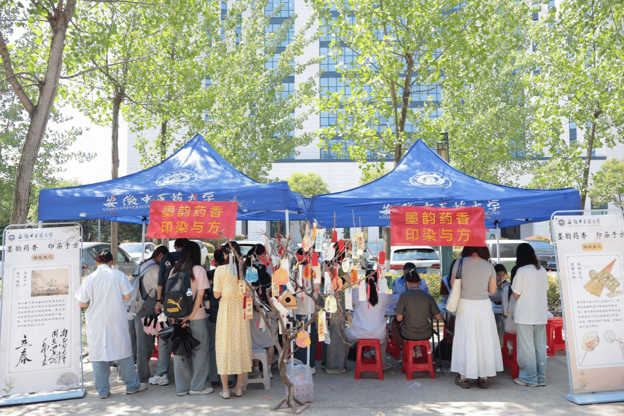 本次文化节设计了一系列趣味实践活动,通过古典炮制工艺中的炒法和炙法展示“匠心工艺,国药精粹”;“中药草木染”让自然界的鲜花、绿叶不仅留存在记忆里更留存在我们生活中;中药资源科考队指导同学们“标本之型 溯药之源”,缝制喜欢的植物标本;“落笔生花”“拓纸成花”让参与同学在团扇上写下或者绘制有关中医药的诗句或绘制有关中药的图案,利用水染颜料进行纸扇的印染活动。还有“妙手生药”“药灯你来捞”“中药对对碰”等。