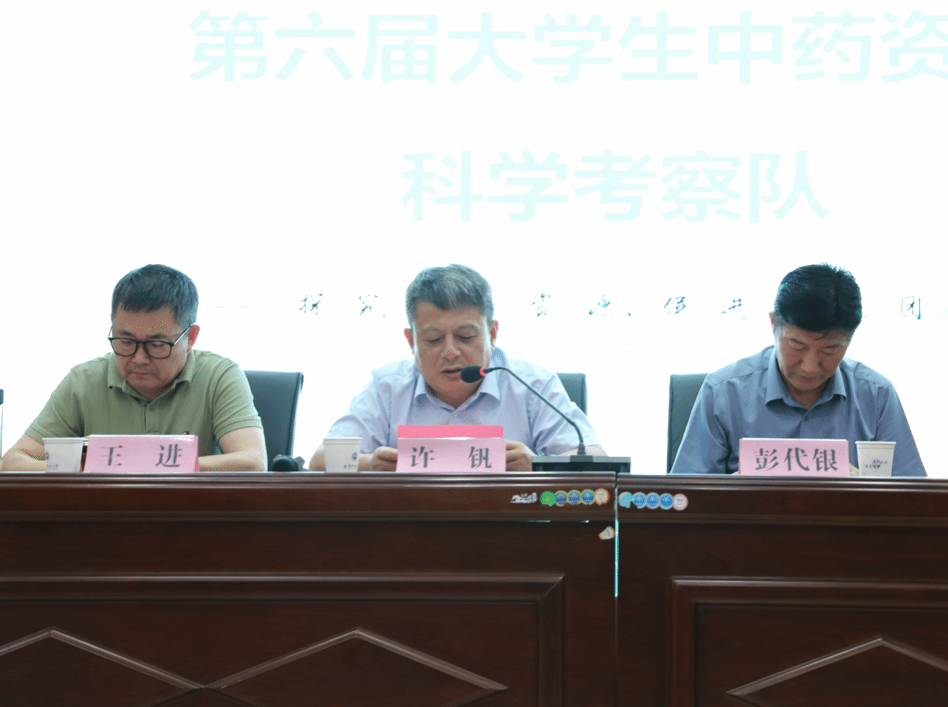 在观看了第六届科考队组建情况视频和钟扬教授事迹视频后,许钒代表公司领导致辞。他指出科考是三全育人具体措施的体现,旨在让员工掌握中药资源分布,为夯实专业坚实基础。与此同时,进一步加强校地、校企合作,共同培养具备专业素养和能力的人才。同时,许钒强调始终要把安全放在第一位,希望队员们增强团结协作能力,勇于探寻未知,传承中医药文化。