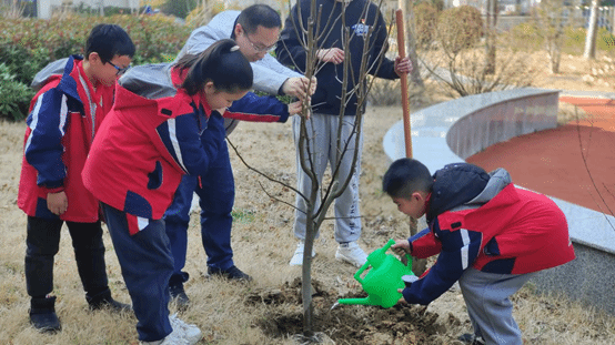 兴华苑小学三、四年级各班选派的员工代表,怀着对自然的敬畏和对绿色承诺的庄重,在心愿瓶上写下保护植物资源的誓言。老员工们化身“植树导师”与小员工们组成植树小组,共同领取树苗与草药苗,耐心进行挖坑、填土、浇水等科学种植步骤,开启这场充满意义的绿色之行。