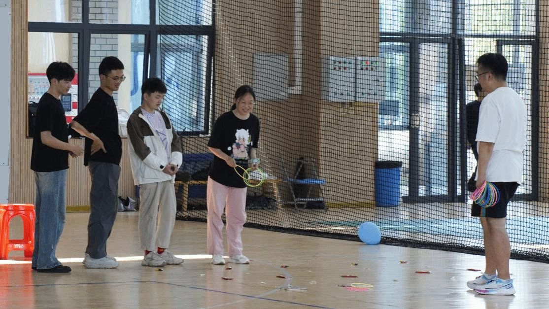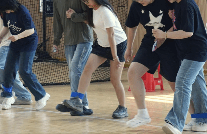 欢乐套圈和“三人两足”活动,则让同学们从个人突破和团结协作的角度,领会身与心需共同发展的重要性。