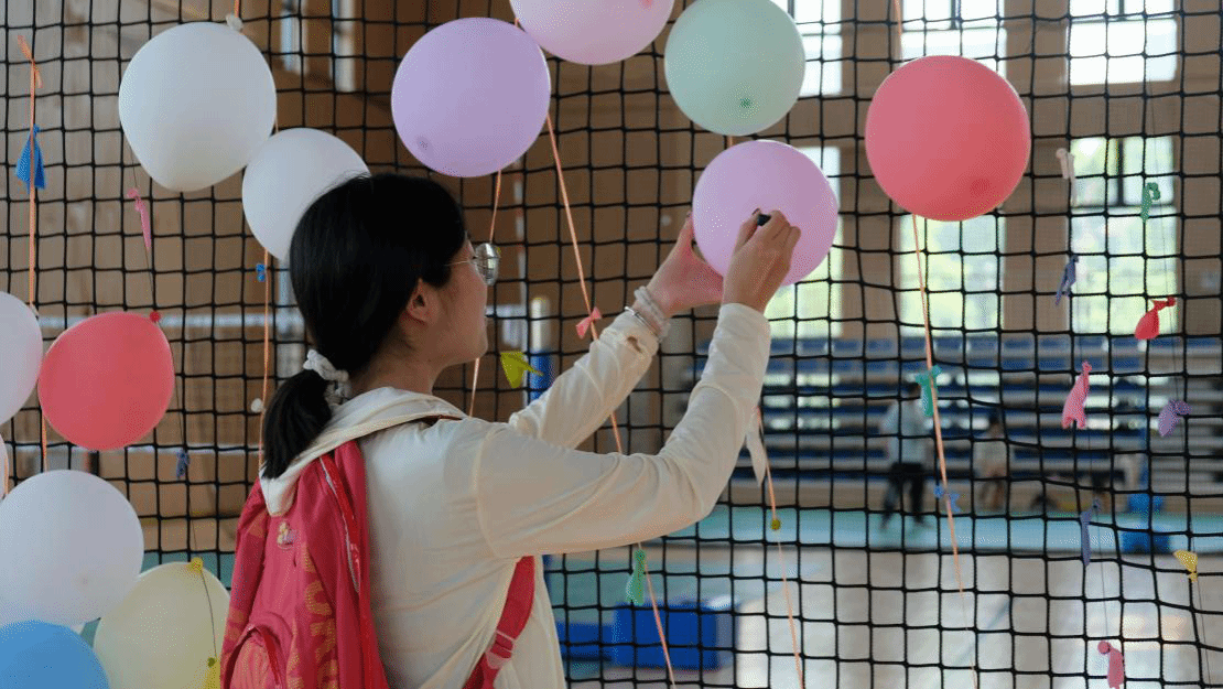 在“开心盒”区域,同学们用彩色便利贴写下近两周的开心小事——“顺利发表论文”“实验顺利”“没有任何烦恼”……一张张充满正能量的纸条被投入透明的“开心瓶”中,汇聚成温暖的记忆库。而在“烦恼破破破”区,参与者们将烦心事写在纸条塞入气球,再用工具“啪”地戳破,刹那间压力全无。现场,气球爆破声伴随着欢笑声此起彼伏,活动通过简单的互动鼓励大家关注情绪健康,既传递快乐,也提供宣泄压力的出口。