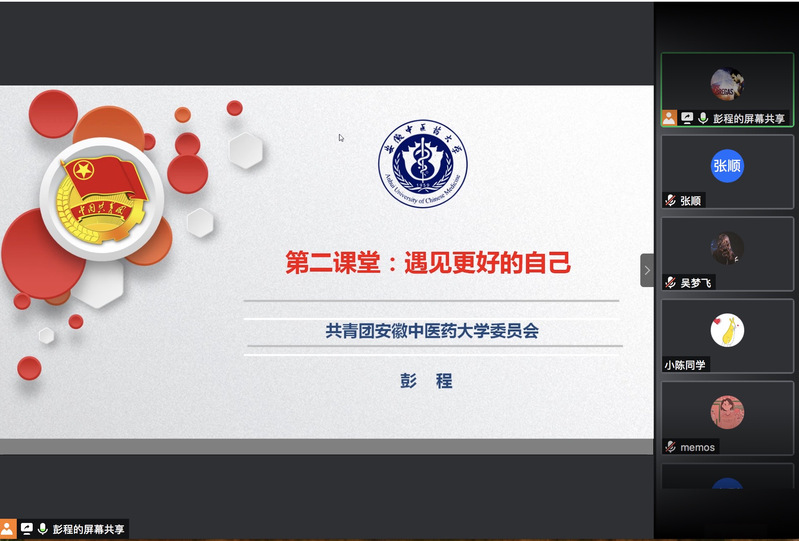 为推动党建带团建工作,加强第二课堂建设,引导员工积极参加课外活动。8月24日下午,学校团委素质拓展部主任彭程于腾讯会议平台开展了“第二课堂:遇见更好的自己”主题讲座,2018药学2班团支部全体成员参与学习。