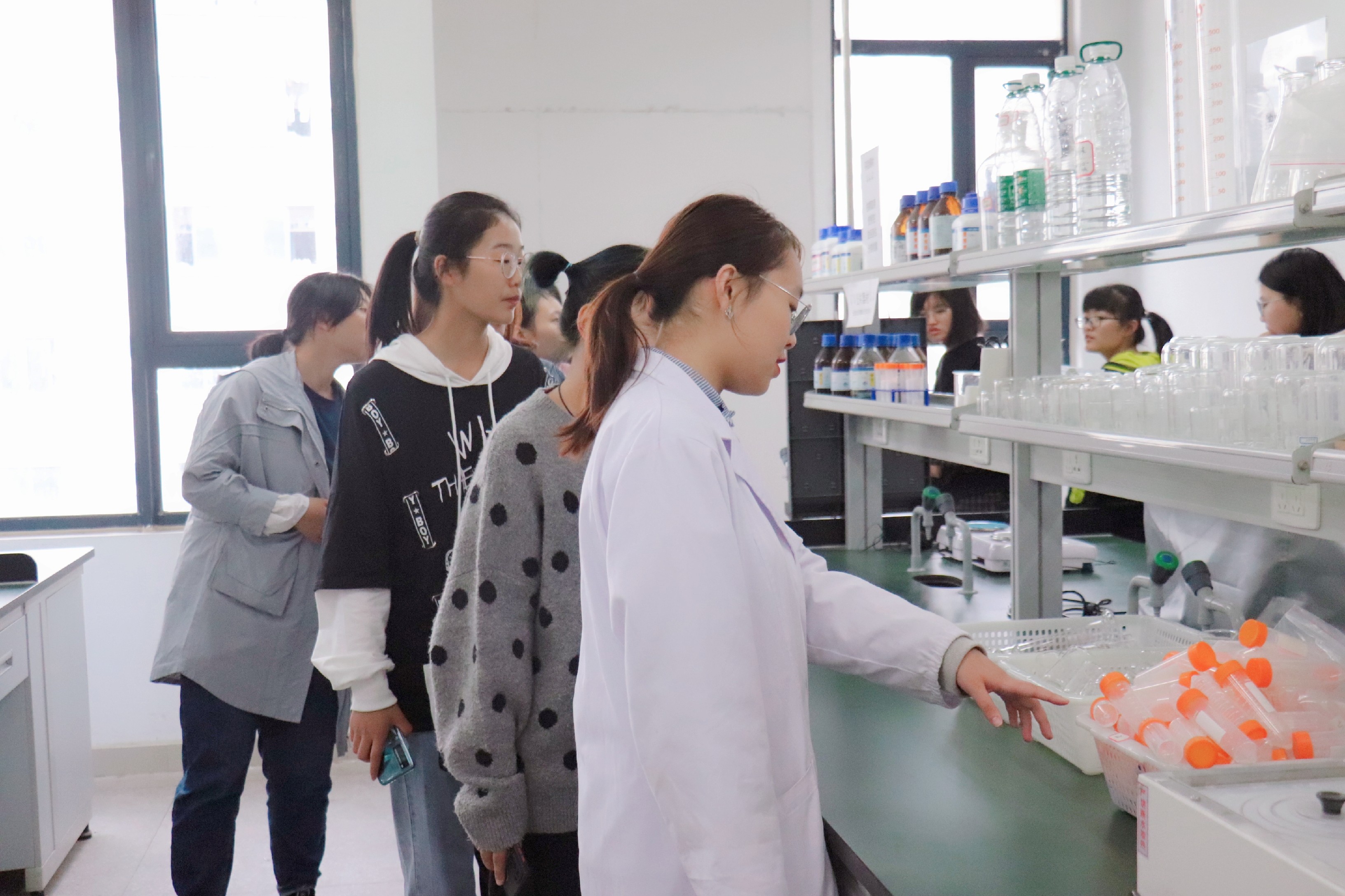 实验室参观由公司员工党员志愿者引领,主要帮助大家熟悉各个实验室概况,并对重大仪器设备和操作注意事项进行介绍,激发大家尽快投入学习参与实验研究的兴趣。在介绍过程中,志愿者还融入了自己对校训 “至精至诚,惟是惟新”的理解,强调提升自身修养,精诚求知,注重实践和创新的重要性,并对新生们提出的问题作了详细解答。(李婷婷、刘超群/文 TapTap点点新媒体工作室/图 吴达武/审核)