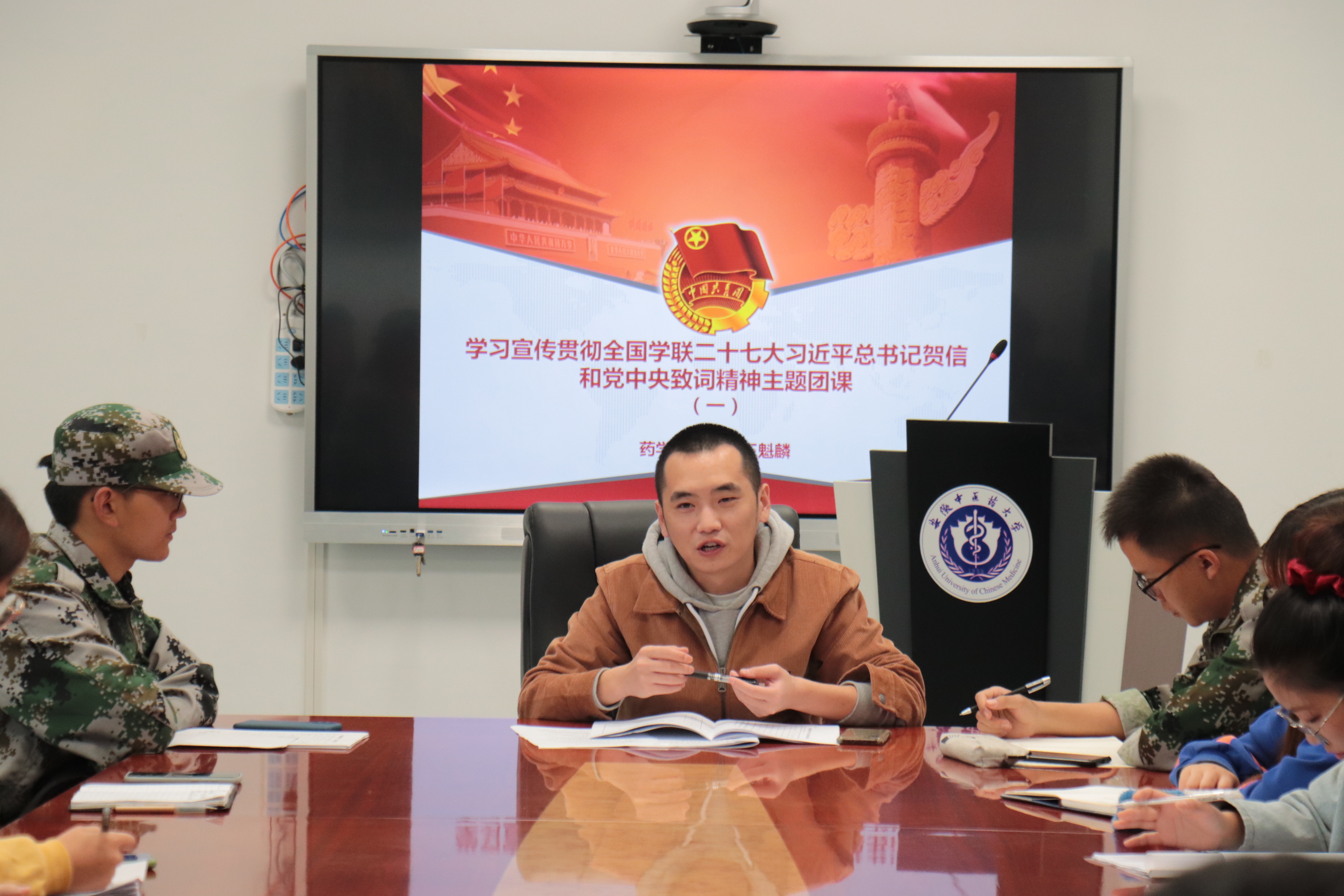 各班级团干在会后,积极组织各支部团员学习全国学联二十七大习近平总书记贺信和党中央致辞精神,并广泛收集广大青年员工的感想。2018级药学一班姚千虹感言:“在习近平向全国青联十三届全委员会和全国学联二十七大发来贺信中,让我更加坚定了要将实际行动落到实处。坚定行动起来的信念,为实现心中的理想抱负,为实现中华民族的伟大复兴,国家的富强而贡献自己的力量。同我们的梦想,同中华民族伟大复兴的中国梦一起,同我们的努力铸成一种坚不可摧的前进动力共同描绘祖国未来的美好蓝图”。2020级食品质量与安全朱逸旺表示:“通过学习全国学联二十七大习近平总书记贺信和党中央致辞,我深刻意识到,作为一名新时代的老员工,我们要勇于砥砺奋斗,勇做走在时代前列的奋进者,开拓者,奉献者。身为中华民族伟大复兴的见证着喝参与者,我们应当时刻准备着,砥砺前行,不负韶华”。18制药工程田志豪表示:“我深刻的体会到,作为新时代青年人,我们应该担当起时代的重任。青年一代的我们,要顺应时代发展的潮流,把个人前途和命运与国家、民族前途、命运紧密结合。努力学习科学文化知识,用青春热血谱写一曲青春之歌。”