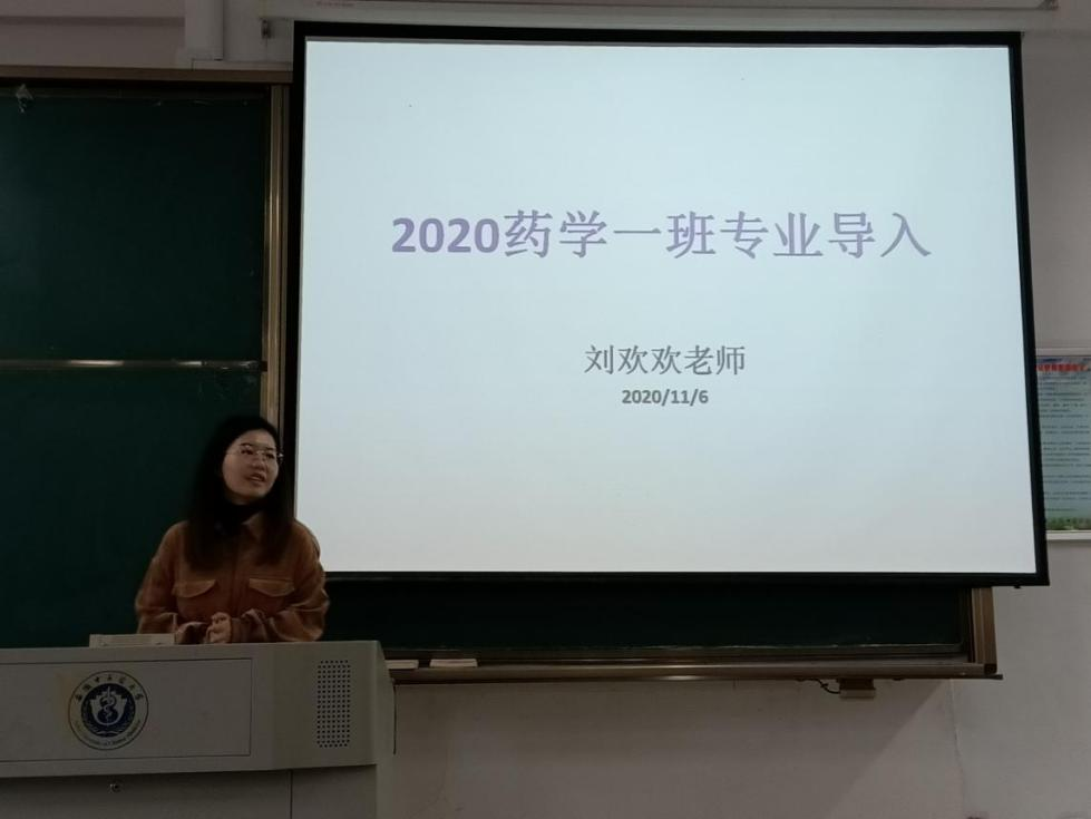 2020年11月6日在A212教室举行了“2020级药学”专业导入的讲座。本次讲座由博士生,硕士生导师刘欢欢主讲,辅导员何瑞曦担任主持人,2020级药学一班全体同学参加参加此次讲座。