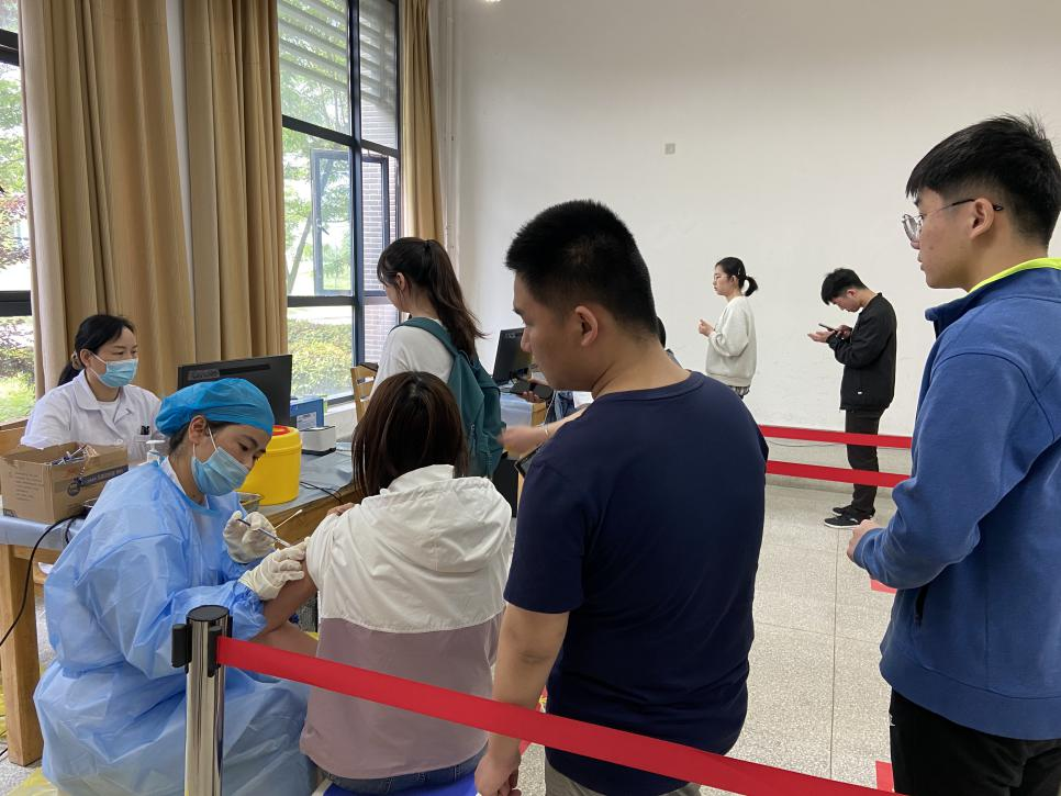公司前期对全院员工接种意愿进行了摸底登记,并进行了多次动员,目前意愿接种员工约占65%。公司事先对各班级上课时间段进行了详细调查,合理安排接种顺序,避免员工排队时间过长和聚集等候。