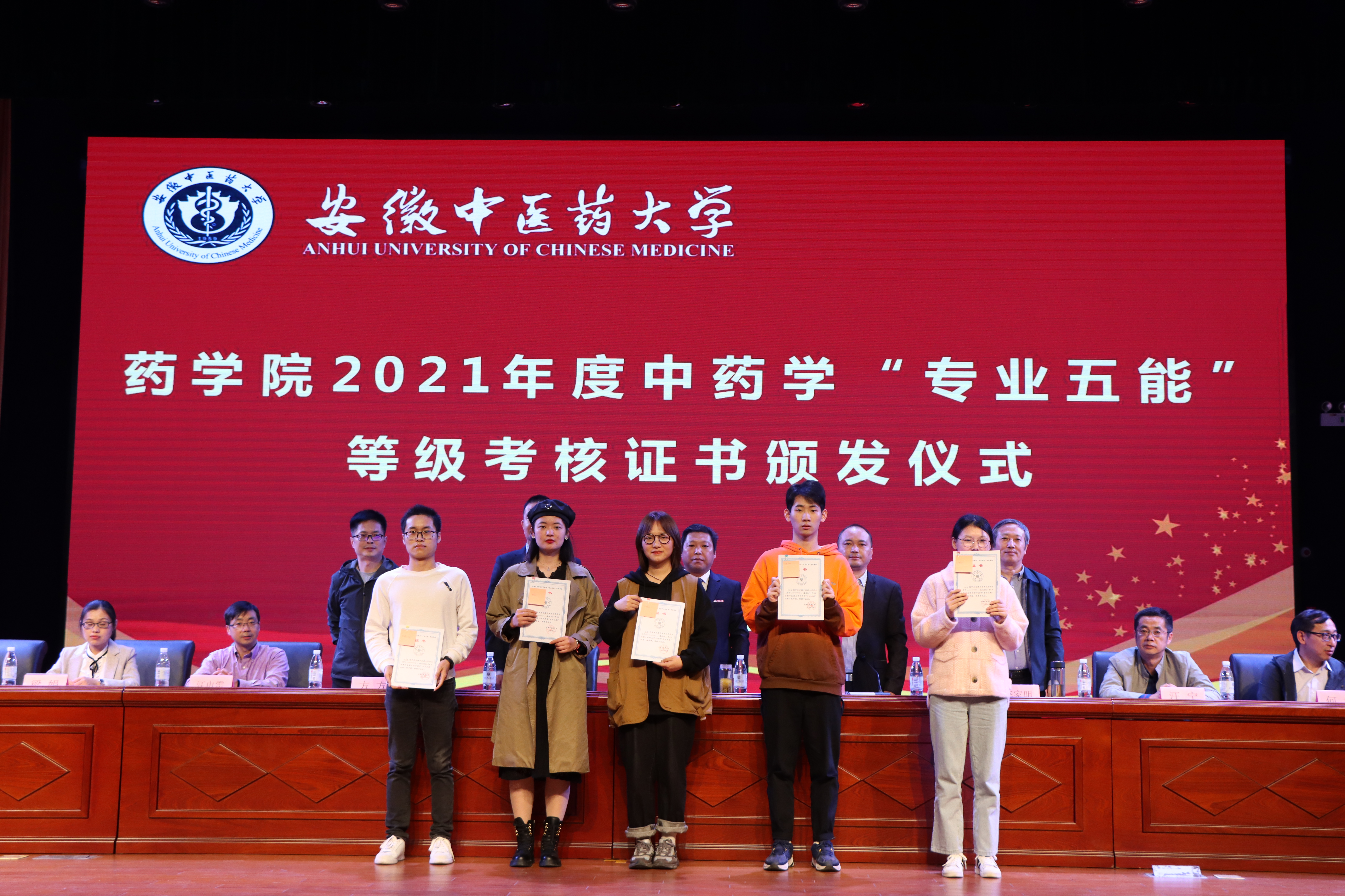 大会为2021年度中药学“专业五能”等级考核合格同学颁发了合格证书,公司号召全体新同学以学长们为榜样,广泛涉猎各方面知识,成为一名真正的“药学人”。