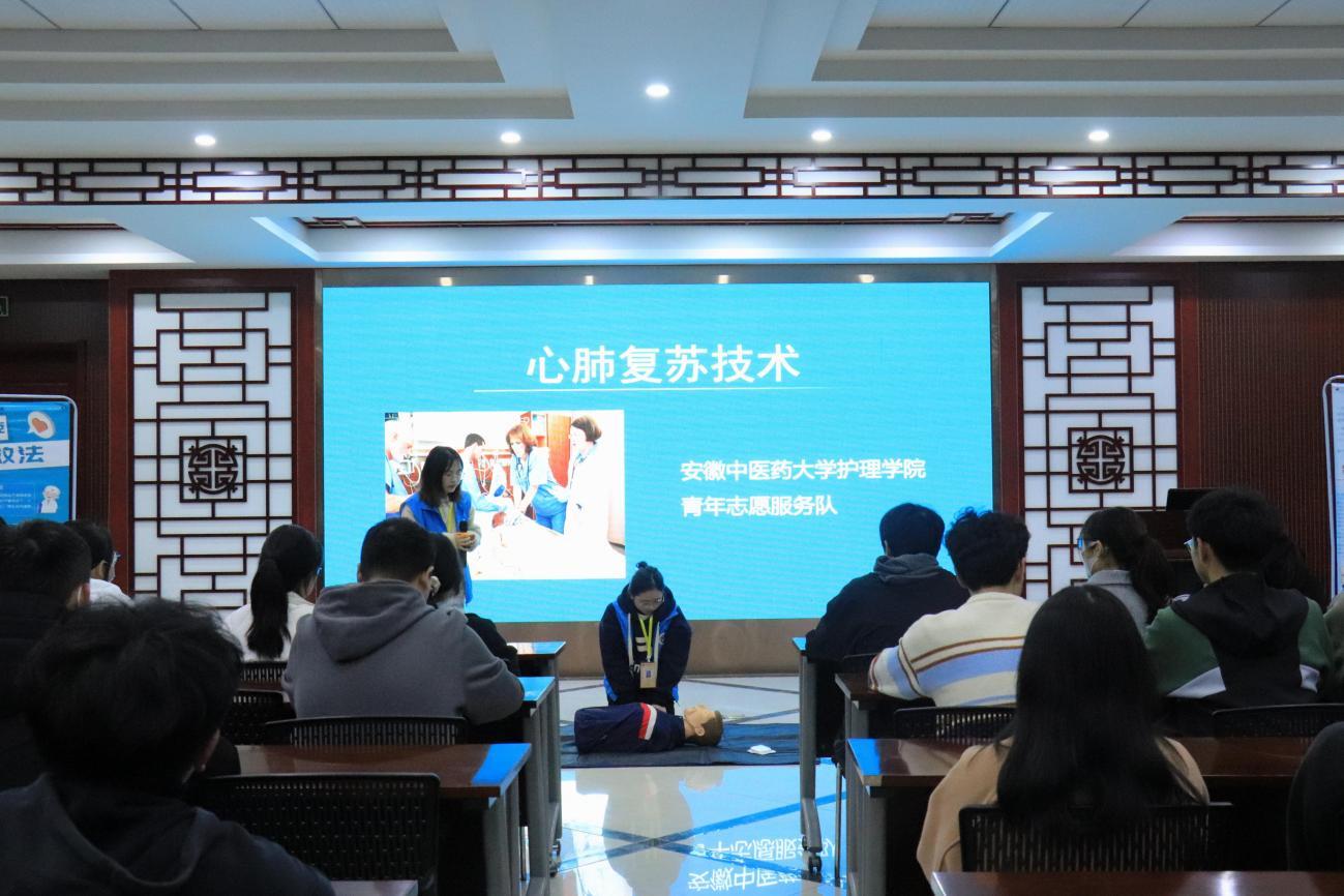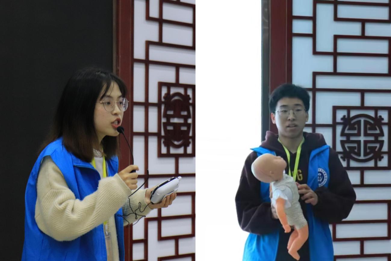 志愿者通过PPT、视频等方式给同学们讲解了应急救护、心肺复苏、创伤现场救护等理论知识,以生动的语言、真实的案例,分别就急救重要性、急救基础知识进行讲解。在急救演示环节中,志愿者带领同学们进行实践学习,巩固了心肺复苏、海姆立克救援等急救的操作要领。活动最后,志愿者为现场同学发放了《急救知识手册》供大家学习参考
