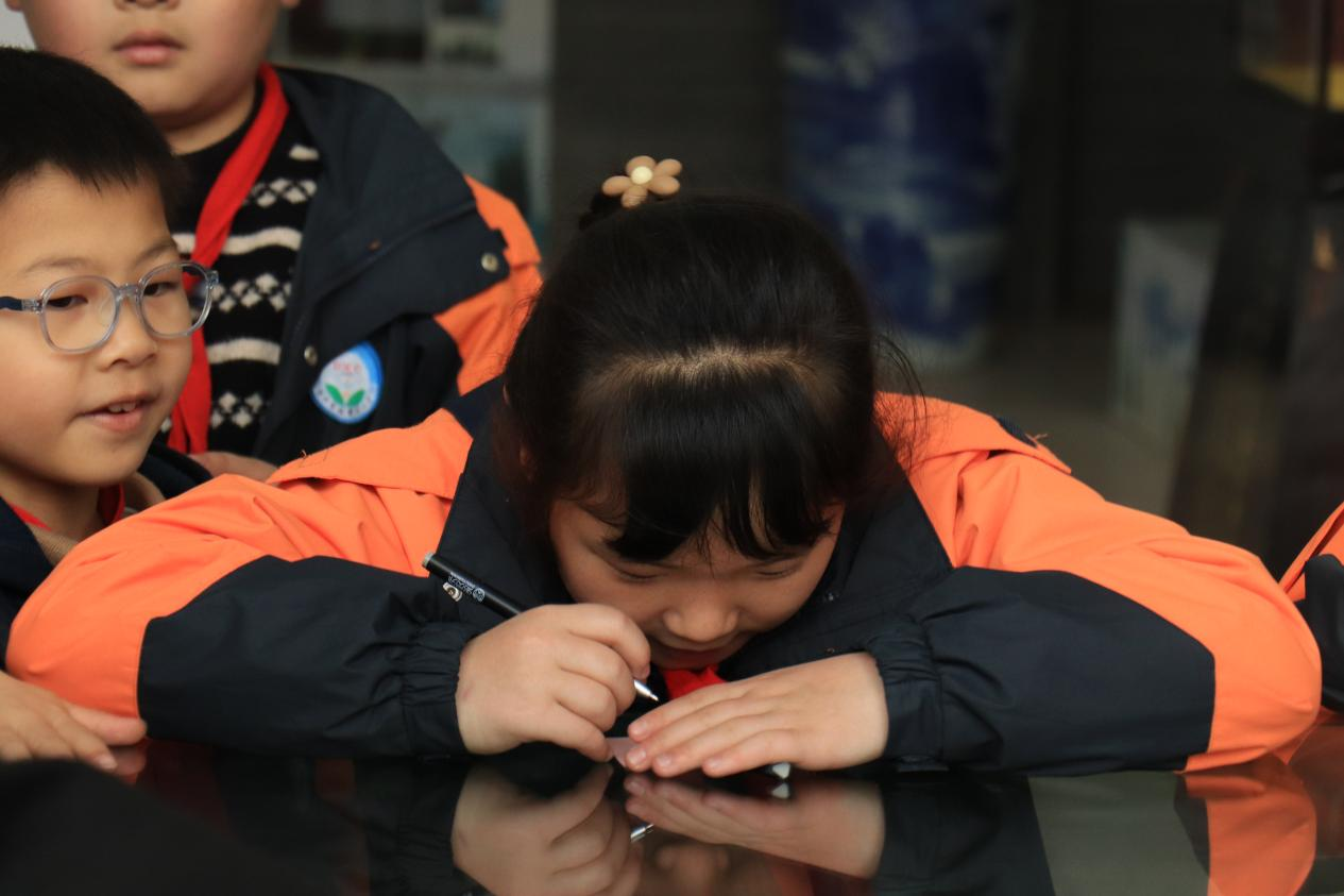 志愿者引导来访师生参观TapTap点点百草园与科考展,向其展示药用植物的生长环境与采集过程,让同学们近距离观察各类药用植物及腊叶标本。“长大了我也要成为医生!”“我以后也要为人们搜集好多的草药!”同学们一边用电话手表拍照,一边在留言板上写下他们对中医药最真挚的理想与愿望。