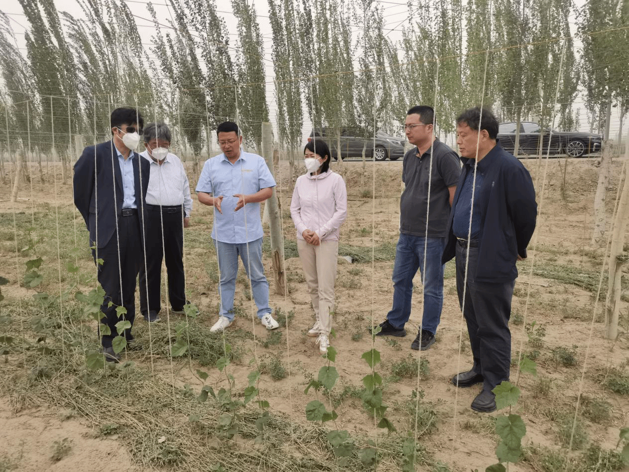 魏骅一行分别到徽岳记公司的瓜蒌种植基地、种苗繁育基地等进行了考察,随后到公司进行了座谈交流。徽岳记公司有限公司负责人、公司员工李广来董事长介绍了企业发展历程、企业发展规划以及目前在新疆盐碱地开展瓜蒌种植及套种中药材品种选择、种植技术方面存在的问题及企业人才的需求。魏骅副董事长、彭代银教授、俞年军教授等对企业提出的发展规划、种植技术难点等进行了指导,围绕下一步校企合作、科研平台共建及人才培养与就业等方面开展了深入交流。