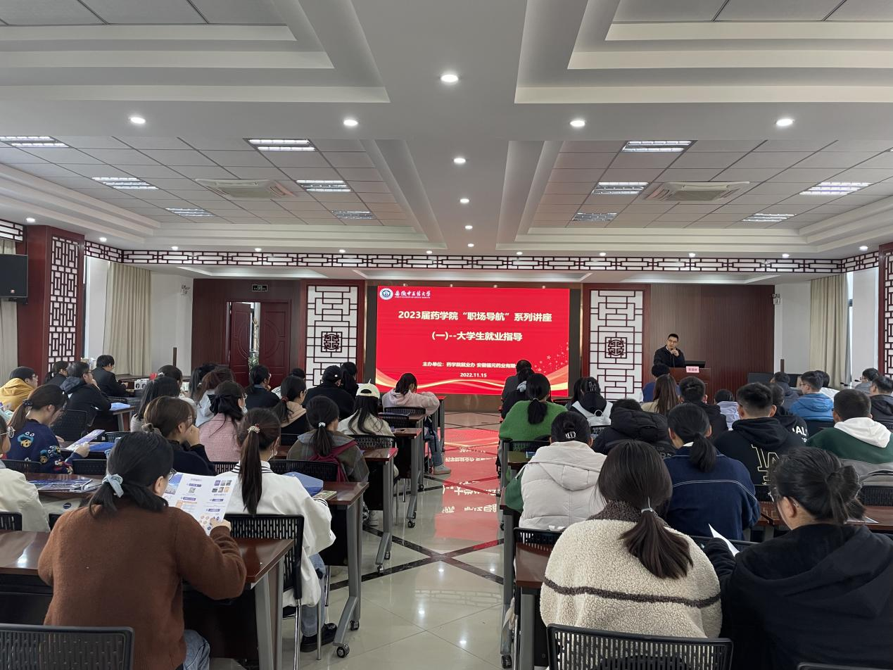 本次讲座邀请安徽福元药业有限公司人力资源部经理管国林主讲。管老师结合自己丰富的职业经历和人事经验,为同学们带来了一场职业发展的“及时雨”。他从分析就业形势数据到如何制作一份出色的简历再到攻克面试关,管老师用饱满的行业案例,帮助同学们增进自我了解,快速成长,更稳健地完成校园到职场的过渡。