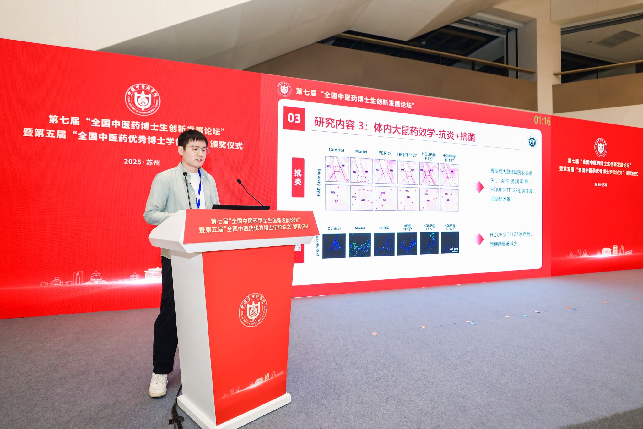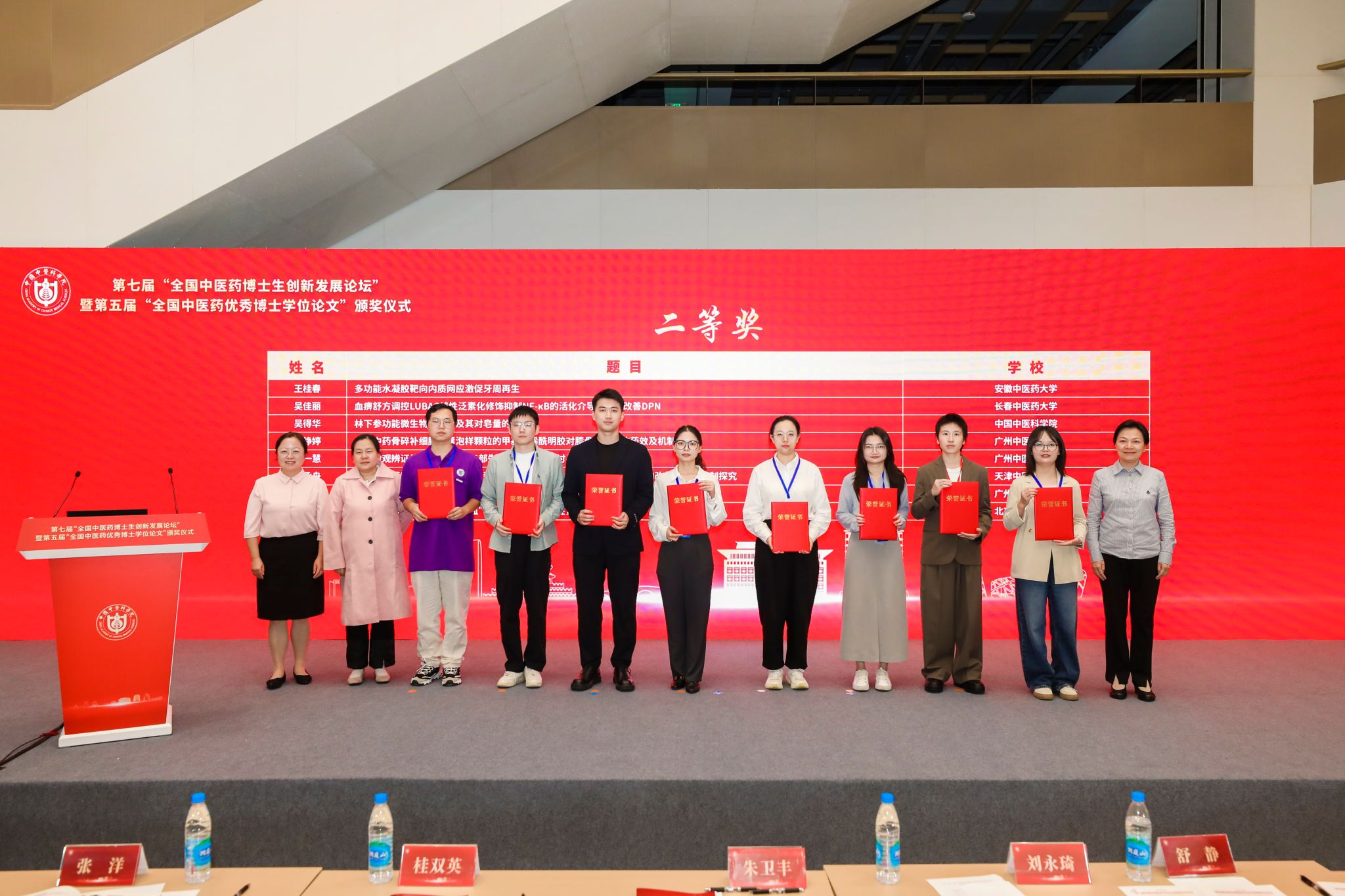 “全国中医药博士生创新发展论坛”是我国中医药领域博士生学术交流的高层次平台,2025年度论坛共设置一等奖4项、二等奖8项、三等奖16项,优秀奖40项。公司2024级中药学博士生王桂春(导师桂双英教授)的论文《多功能水凝胶靶向内质网应激促牙周再生》荣获“优秀论文二等奖”,2024级中医专博生陈祝越(导师谢道俊教授)的论文《谢道俊教授基于丹溪学说探讨中西医结合论治情志病经验撷粹》获优秀奖,充分展现了公司在中医药创新人才培养方面的卓越成效。