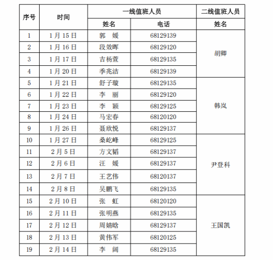 依据公司放假值班要求,并结合公司实际需要,经研究决定,行政值班安排如下: