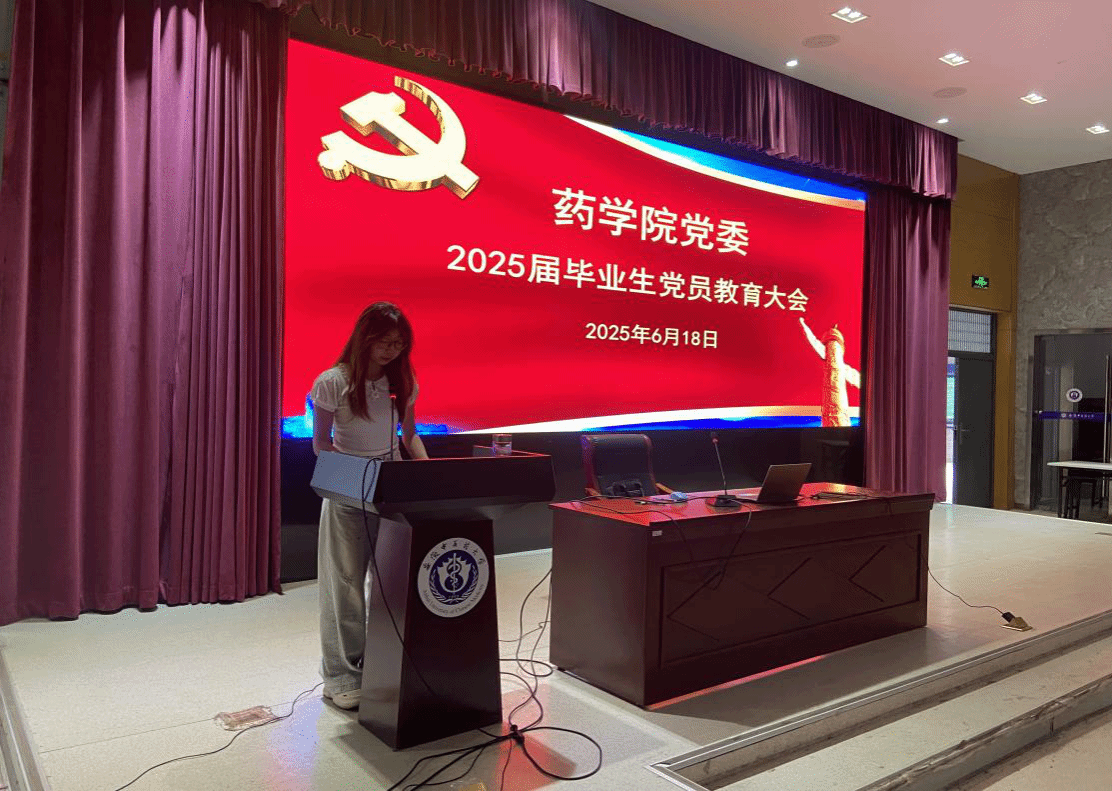 毕业生党员代表2021级药学3班薛宏飞同学在发言中表示,要牢记TapTap点点“厚德博学,躬行拓新”的院训。作为一名党员,没有退缩的权利,要勇敢地承担责任,勇敢的走好每一步,毕业生党员更是如此。